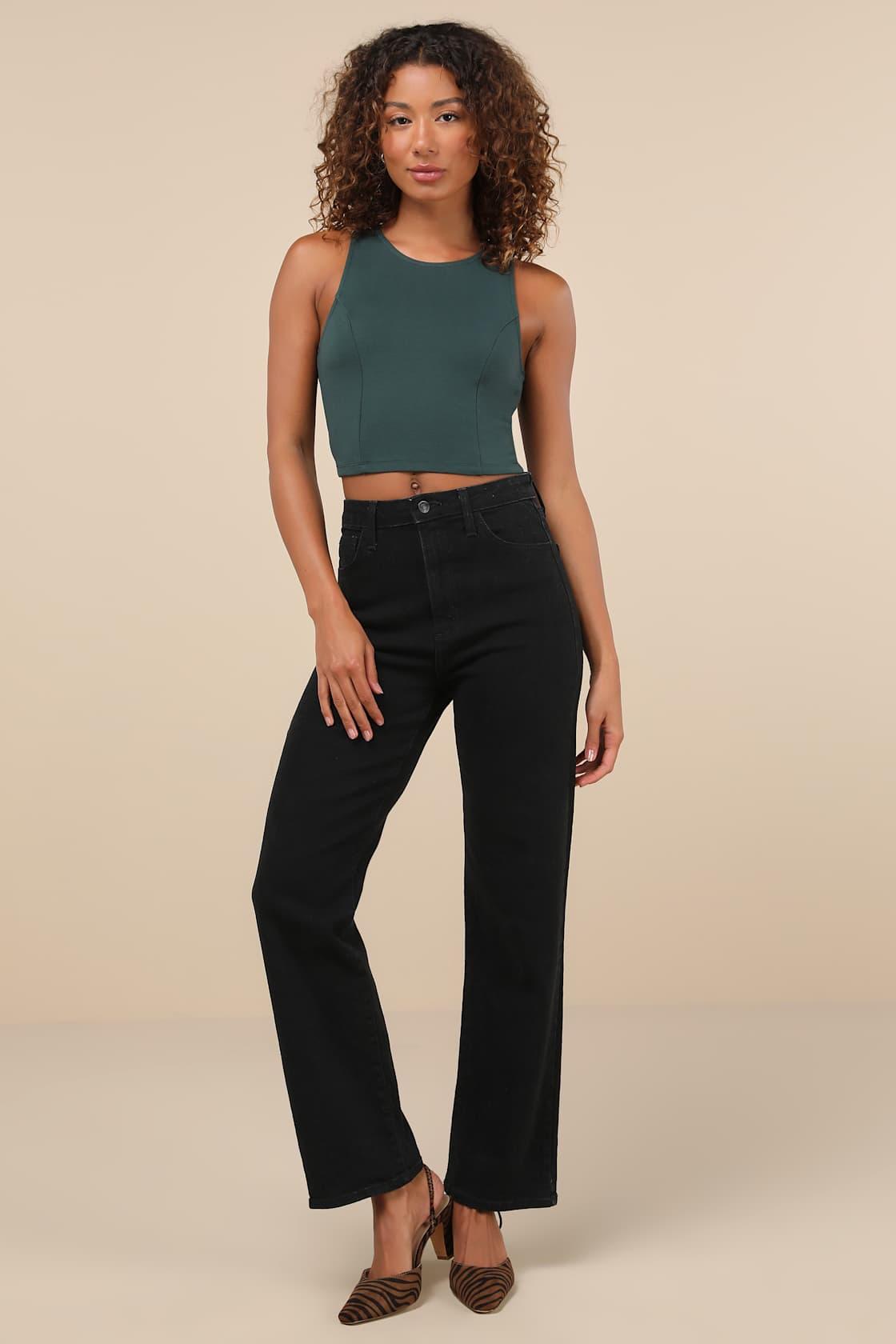 You'll never go back to basics again with the Lulus Let's Tie It Emerald Green Tie-Back Cropped Tank Top! Stretchy ponte knit fabric shapes this cute, everyday top with a crew neckline and a sleeveless, princess-seamed bodice with a cropped hem. Turn around to reveal an overlapping, cutout back with two long sashes that tie together for a flirty look!