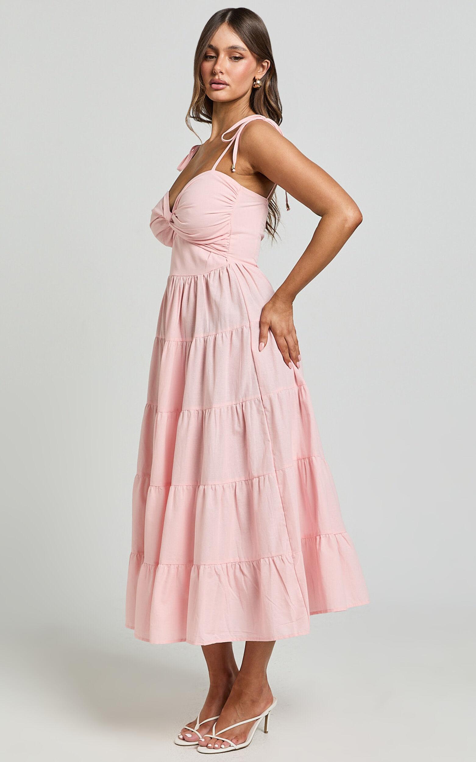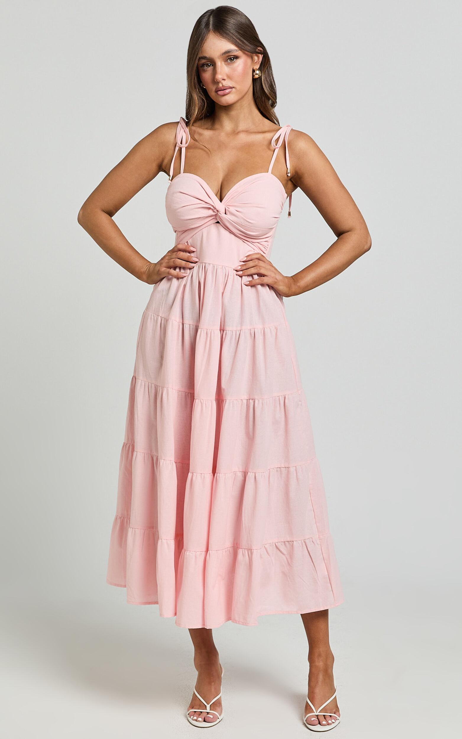 Elevate your wardrobe with the Leticia Midi Dress, a masterpiece that embodies grace and versatility in every stitch. Perfectly designed for those who cherish comfort without compromising on style, this dress is a celebration of femininity in its most beautiful form. Its soft pink hue whispers tales of elegance, making it a must-have in your collection.Product Details:Fit & Flare DressMidi LengthCotton FabricSleevelessV NeckCasual WearMaterial and CareMain Fabric: 100% CottonLow / No stretch