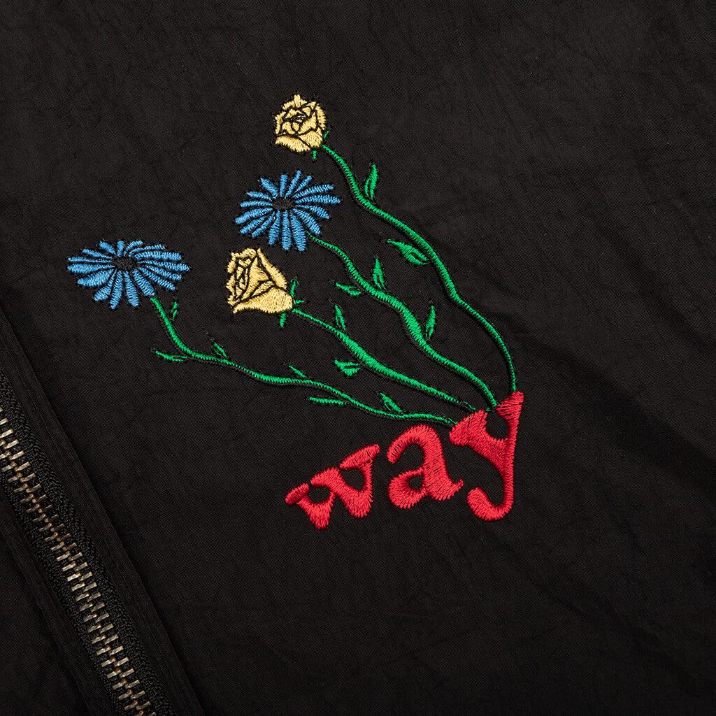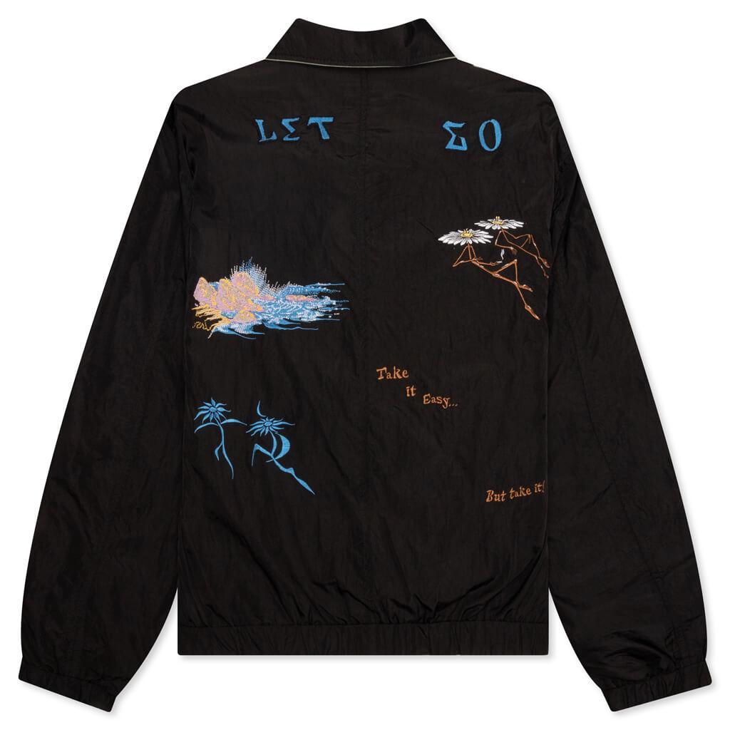 Taking on a reversible aesthetic, the Jungles Lets Go Reversible Harrington Jacket is cut from a blend of nylon taffeta and herringbone cotton twill on the reverse side. Embroidered details are scattered throughout, while the side pockets and full-zip closure offer a secure touch. The pointed collar and elastic ribbed detailing at the cuffs wrap up the remainder of the design. Nylon taffeta/herringbone cotton twill blend Reversible Pointed collar Full-zip closure Side pockets Embroidered graphics Elastic ribbed cuffs Style No: RHJ-LG-BG