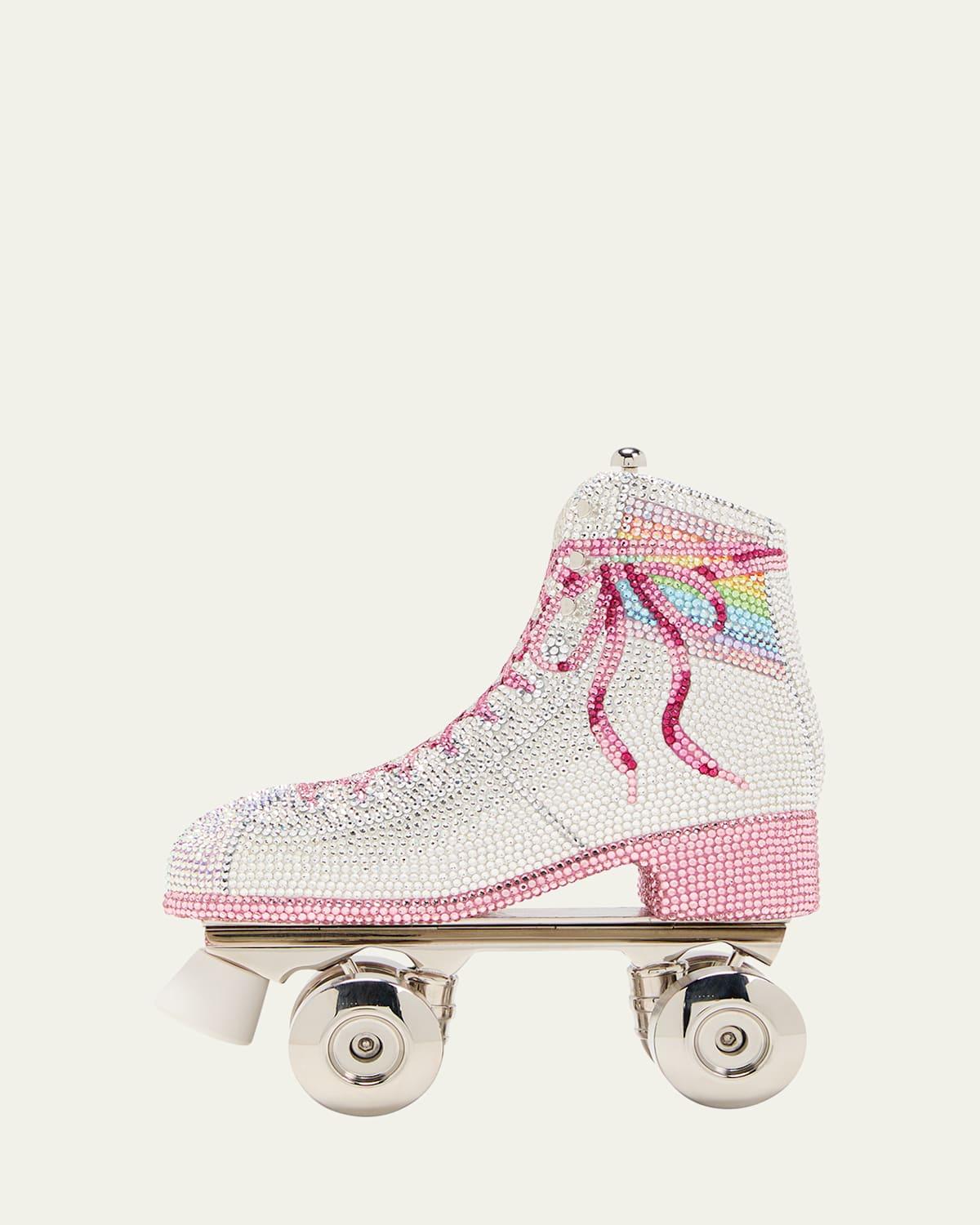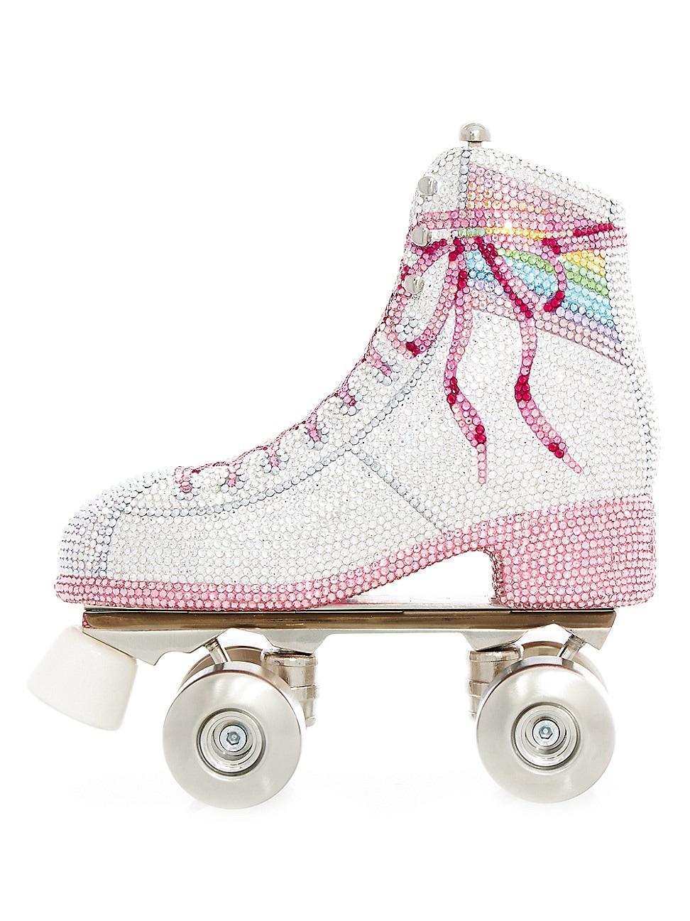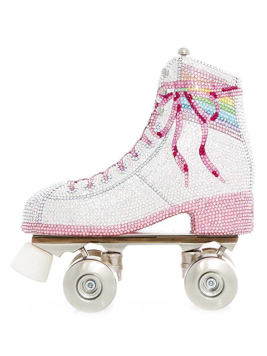 Illuminated with crystals, Judith Leibers clutch showcases a roller skate silhouette with a push-down clasp at the top. Removable chain-link strap Push-down closure Crystal/silver Made in Italy SIZE Chain handle, 23 drop Chain strap, drop Weight, about 3 lbs 6L x 6.4 H x 2.4 D. Handbags - Judith Leiber Handbags > Judith Leiber Couture > Saks Fifth Avenue > Barneys. Judith Leiber Couture. Color: Silver Rhine Multi.