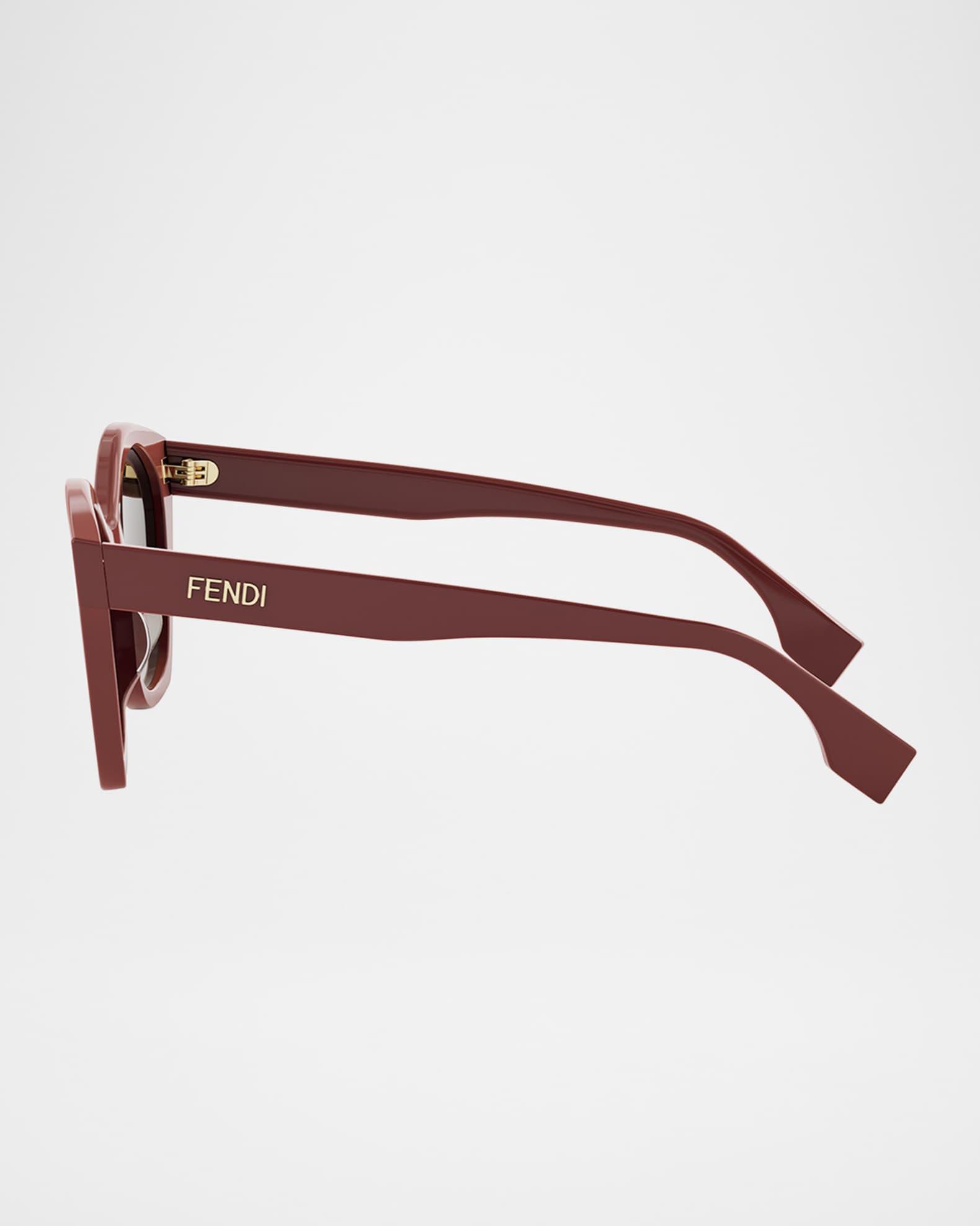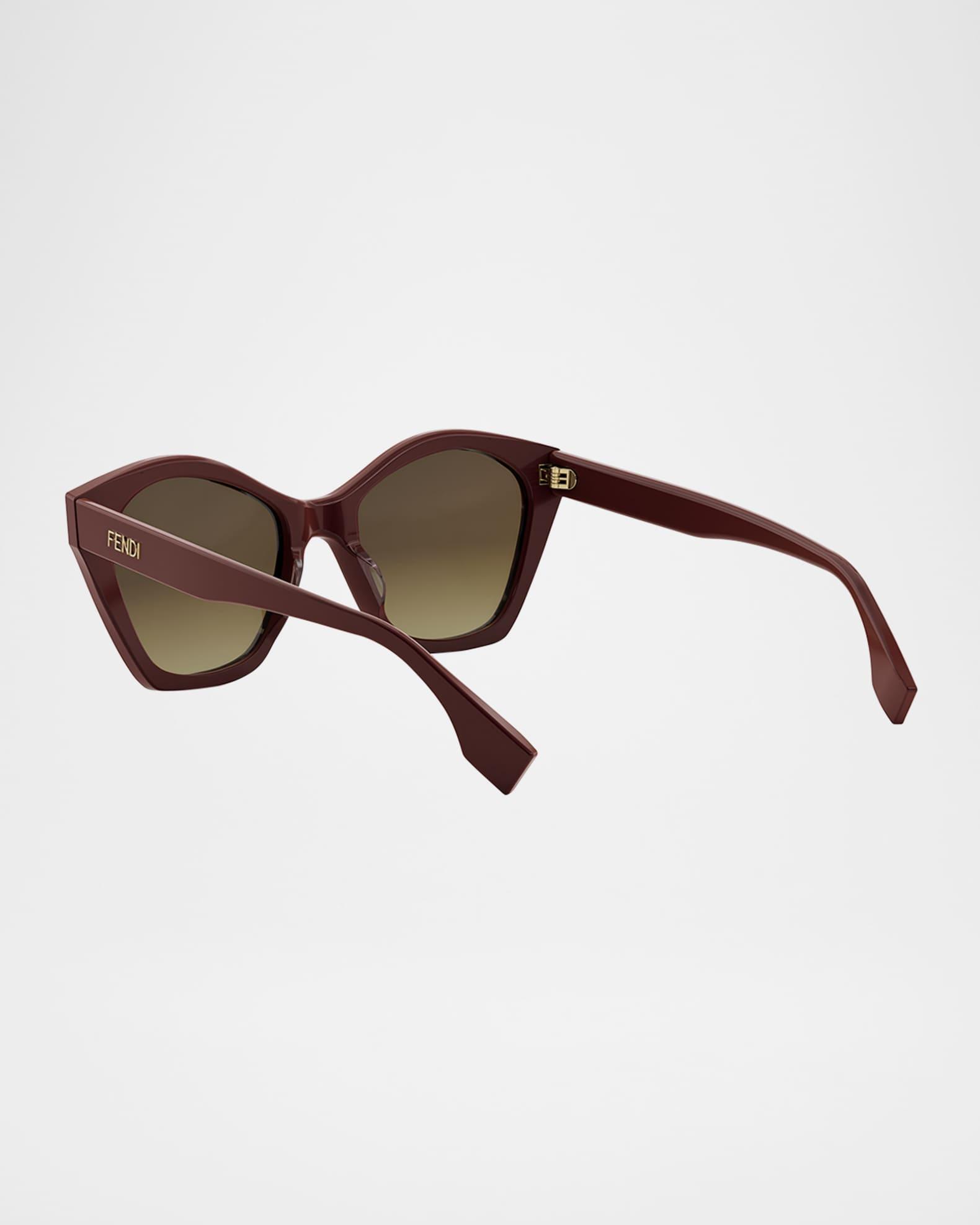 Fendi geometric butterfly-shaped sunglasses in acetate from the Lettering collection Eye/bridge/temple (in mm): 54-19-145 Gradient lenses Saddle nose bridge Thin, tapered arms Classic logo on the temples Acetate 100% UVA/UVB protection Made in Italy Proposition 65 warning for California residents