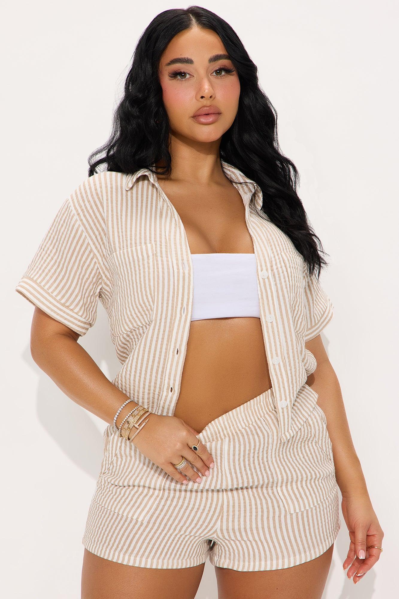 Letting Go Of You Striped Short Set - White/combo