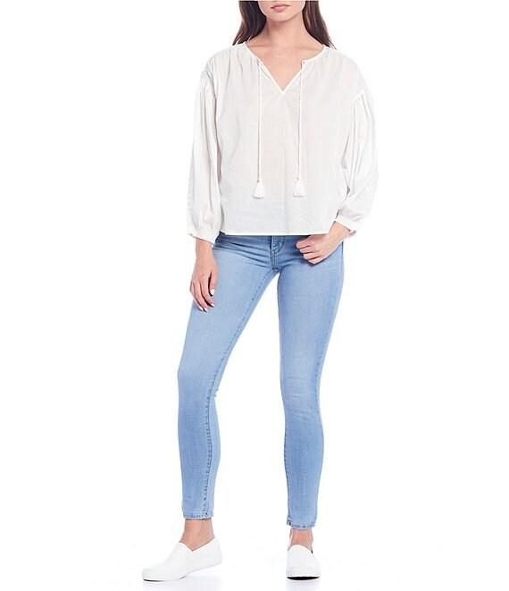 From Levi's®, these jeans feature:stretch denim fabricationskinny leg silhouette mid rise waistbandbelt loops5-pocket styledesigned to smooth and enhanceour shaping jeans slim your tummylift our seat and lengthen your legsstraight hemline front button closure approx. 30" inseam, 11" leg openingapprox. 9.25" front, 13.25" back risecotton/polyester/elastanemachine washImported.