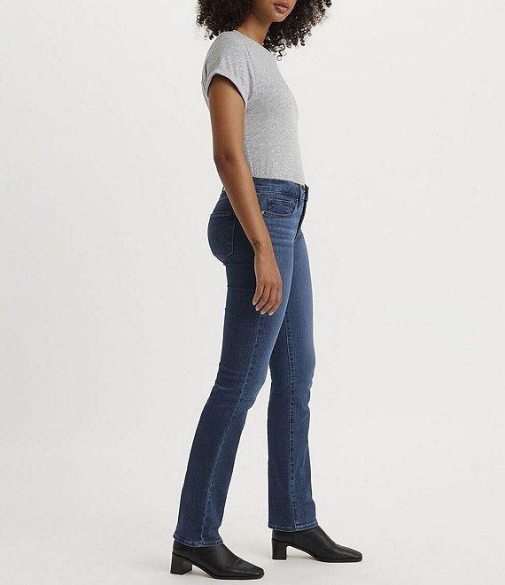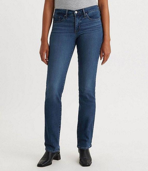 From Levi's®, these jeans feature: Mid rise Zip/button-front closure Belt loops 5-pocket styling 2 front pockets (1 with coin pocket) 2 back pockets Smoothing tummy panel Shapes through the hips and thighs Ankle length Straight legs Cotton/viscose EcoVero™/polyester/Lycra® spandex denim Machine wash/tumble dry Imported.