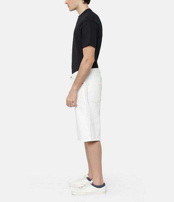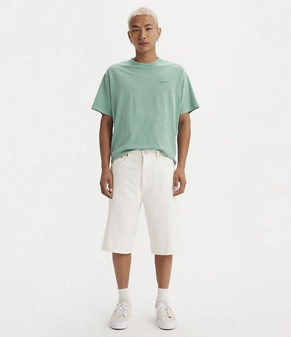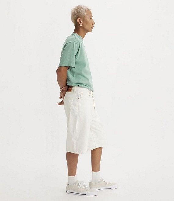 From Levi’s®, these shorts feature: Loose fit through the seat and thighs Sits below waist Belt loops Zip/button-front closure 2 front pockets; one with coin pocket 2 back pockets 12 1/8” front rise Approx. 22” leg openings 12" inseam Cotton Machine wash/tumble dry Imported.