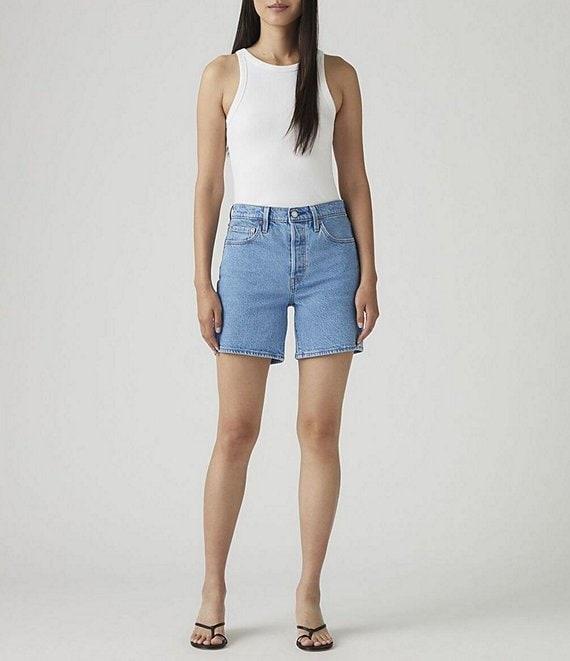 From Levi's®, these shorts feature: High rise 5-pocket styling Zip/button-front closure Easy fit through the hips Mid-thigh length Approx. 6" inseam Non-stretch cotton denim Machine wash/tumble dry Imported.