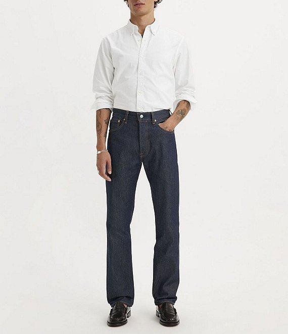 From Levi's®, these jeans feature:Classic 5-pocket stylingClassic fitTilted waistband pitches toward the front; sits below the waistButton flyBelt loopsApprox. 12.25" riseStraight, approx. 17.25" leg openingsCottonMachine wash/tumble dryImported.