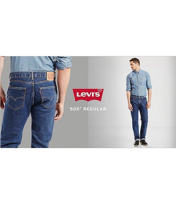 From Levi's®, these jeans feature: Regular fit Jeans sit below the waist Belt loops Zipper fly/button closure Classic 5-pocket jeans Straight leg Approx. 11" rise; 16.5" leg openings Cotton Machine wash/tumble dry Imported.