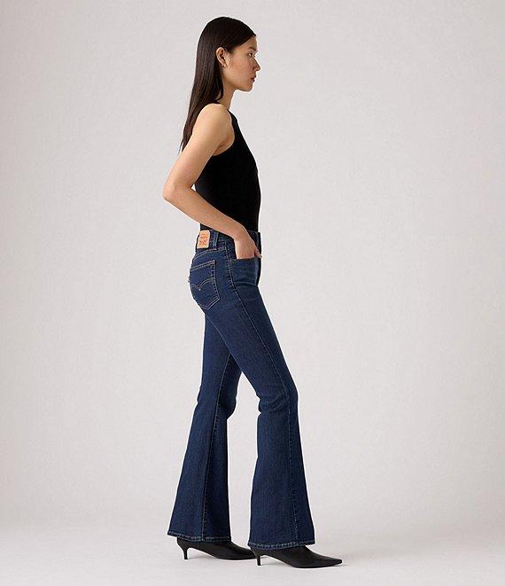 From Levi's®, these jeans feature: High rise Belt loops Zip/button front closure Slim fit through the hips and thighs 2 front pockets (1 with coin pocket) 2 back pockets Flared legs Cotton/polyester/Lycra® spandex denim Machine wash/tumble dry Imported.
