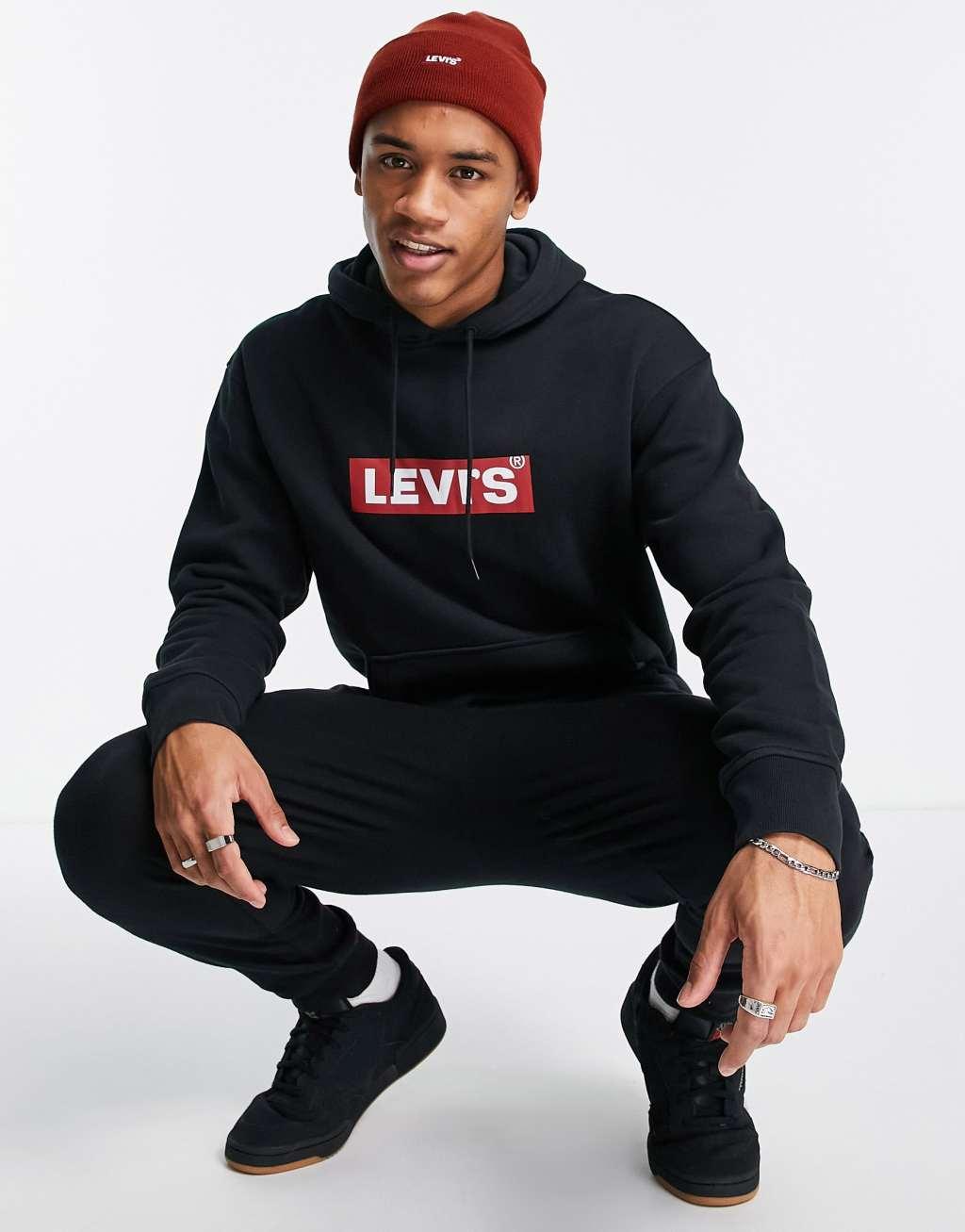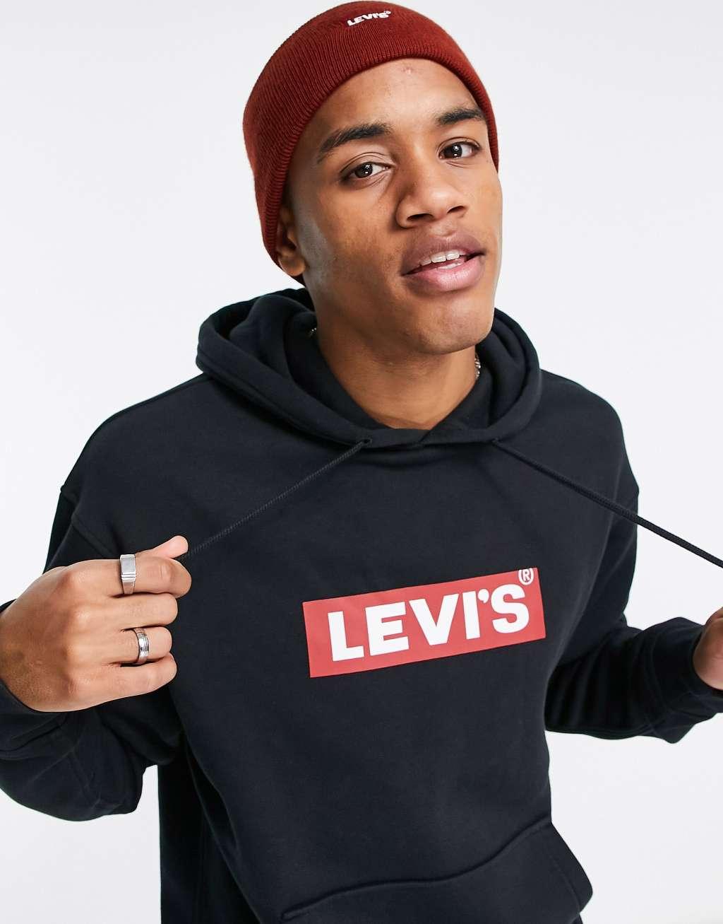 Hoodie by Levi's Act casual Drawstring hood Logo print on chest Pouch pocket Regular fit