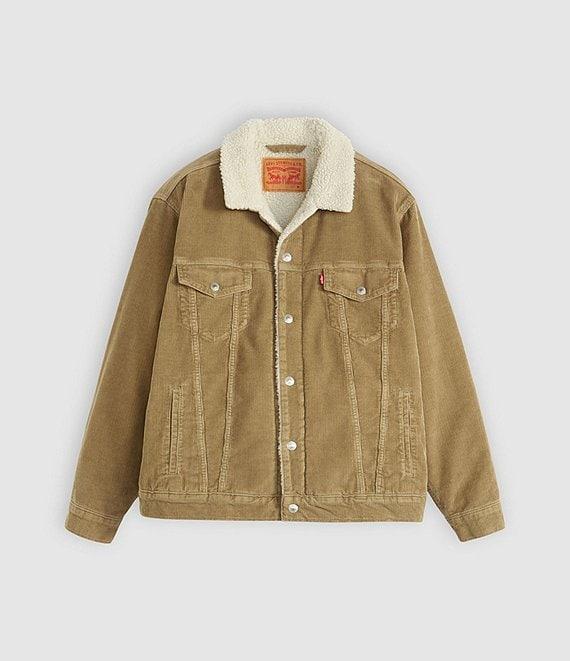 From Levi's®, this jacket features: Faux-Sherpa collar Long sleeves Snap-front closure Snap closure flap pockets 2 side pockets Faux-sherpa lining Relaxed fit Cotton corduroy Machine wash/tumble dry Imported.