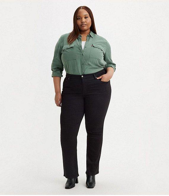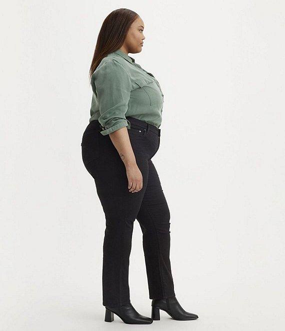 From Levi's® Plus, these jeans feature: Stretch denim fabrication Straight leg silhouette High rise waistband Belt loops 5-Pocket style Button zip fly closure approx. inseam: 30.5"; front rise: 12.5"; back rise: 19.875" Cotton(generic)/polyester(generic)/elastane(generic) Machine wash Imported.