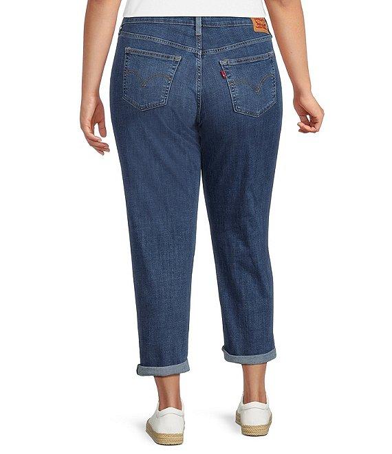 From Levi's® Plus, these jeans feature: Straight leg silhouette 5-pocket style boyfriend jean full length pants front button and zip closure approx. inseam 26" (1" rolled twice); measurements based from size 18 waist Cotton/polyester/viscose(Lenzing™ Ecovera™)/elastane(Lycra®) machine wash/tumble dry Imported.