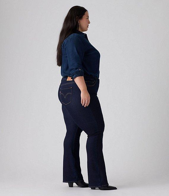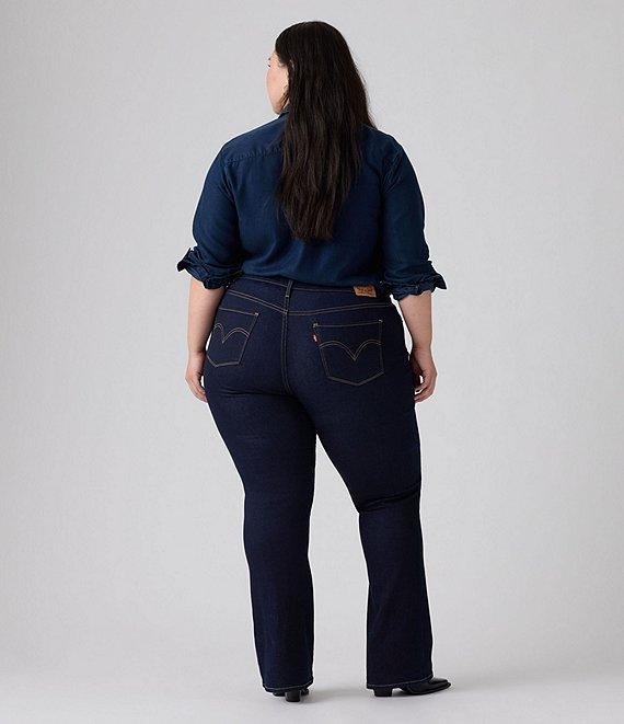 From Levi's® Plus, these jeans feature: Stretch denim fabrication Bootcut leg silhouette Mid-rise waistband Belt loops 5-pocket style Easy through the hip and thigh Button/zip fly closure Approx. inseam: 32"; leg opening: 20" Cotton/polyester/lycra Machine wash Imported.