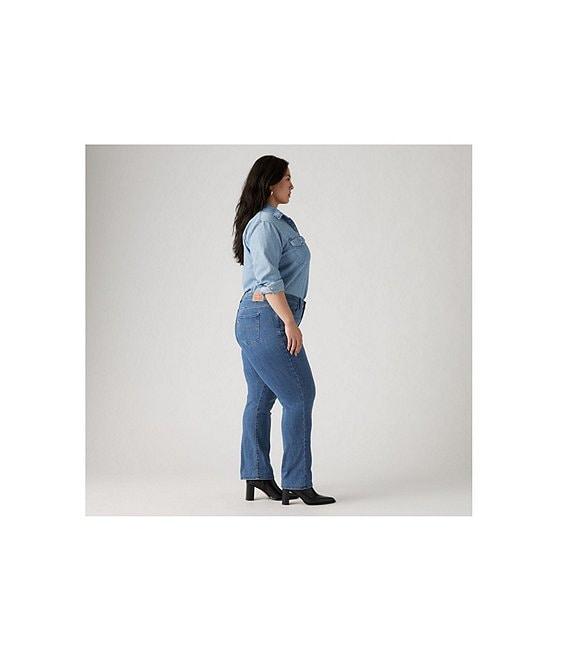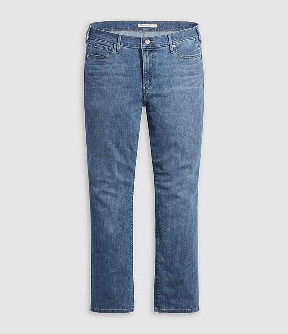 From Levi's® Plus, these jeans feature: stretch denim fabrication straight leg silhouette mid rise waist 5-pocket style front button/zipper closure with belt loops approx. 32" inseam; 17.75" leg opening; 10.75" front rise cotton/viscose/polyester/elastane machine wash/tumble dry Imported.