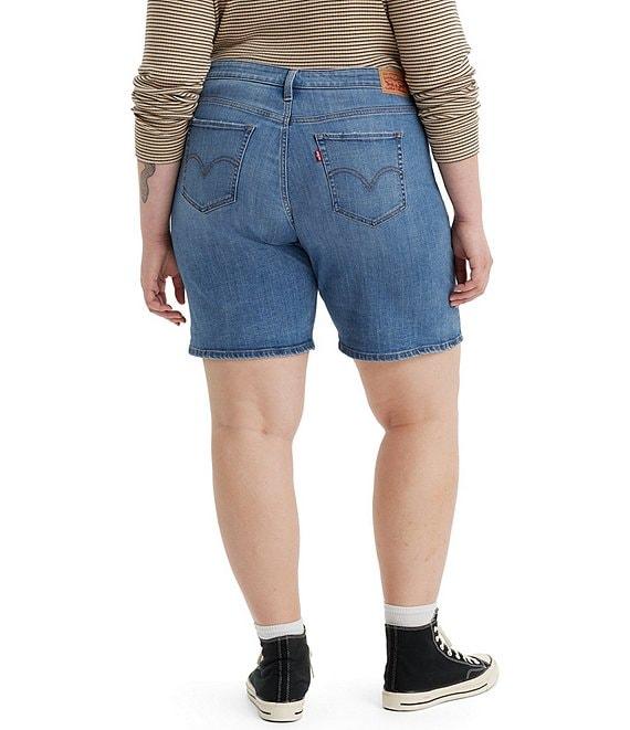 From Levi's Plus®, these shorts feature: Stretch denim fabrication 5-pocket style Belt loops Distressed details Relaxed through your hip and thigh Mid rise Button/zip fly Approx. 7" inseam, (1 rolled 2x), 11" rise, 27 1/4" leg opening Cotton/polyester/viscose (ECOVERO)/elastane Machine wash/tumble dry Imported.