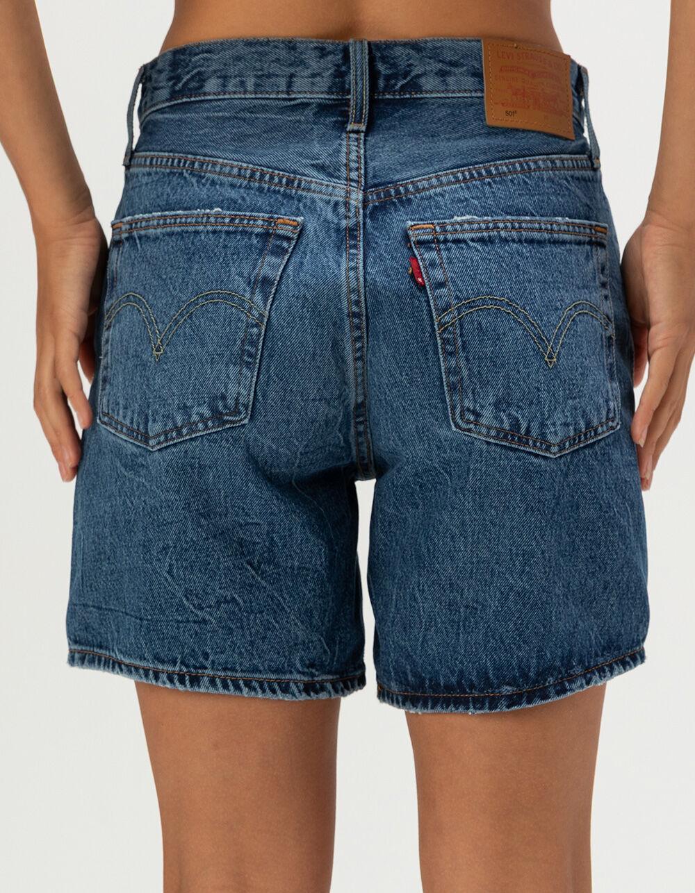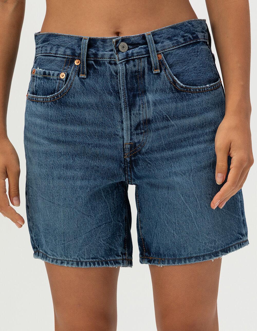 Levi's Premium 501 Mid Thigh Shorts. The first ever jean shorts. Modeled after the 501® Original jeans, these Mid-Thigh Shorts were made with our iconic vintage-inspired fit, a flattering high rise and a longer inseam. To this day, they’ve never gone out of style. And they never will. That perfect broken-in look—without putting in the work. This garment was distressed for an authentic vintage-inspired feel and lived-in style. 5-pocket denim styling. Button fly. Non-stretch. Easy through the hip. 10 1/2" high rise. 6" inseam. 22" leg opening (measurements based on size 27 waist). 100% Cotton. Machine wash. Imported.