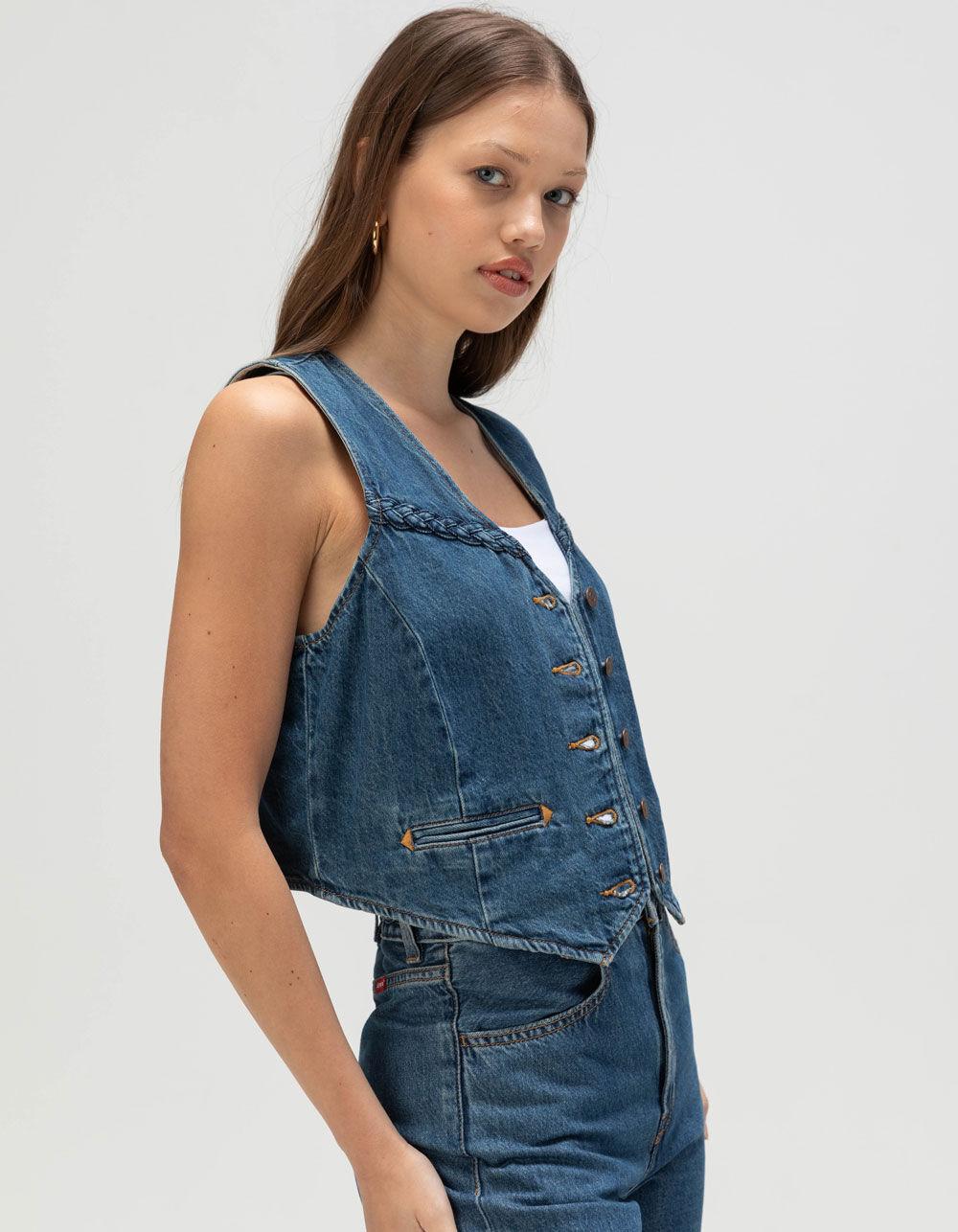 MEDIUM INDIGO. Levi's Premium Braided Vest - Big Yikes. A little retro, a little western. This Braided Vest features a classic button-up front and a vintage braided design. Cut with a standard fit. Levi's made this garment soft with cotton that gives it an easy, drapey fit. Non-stretch. Sleeveless. 100% Cotton. Machine wash. Imported.