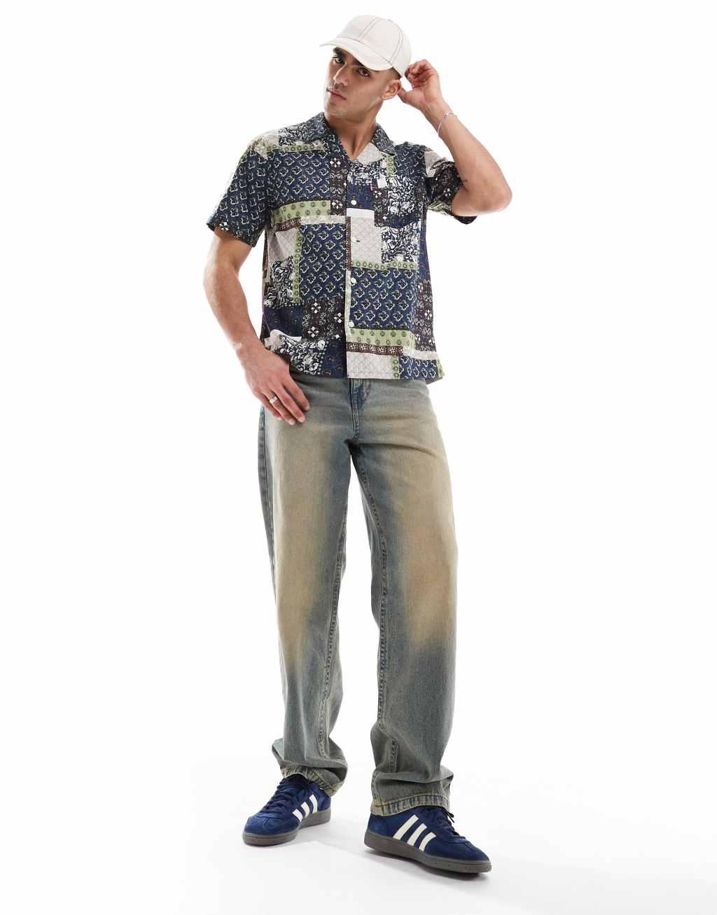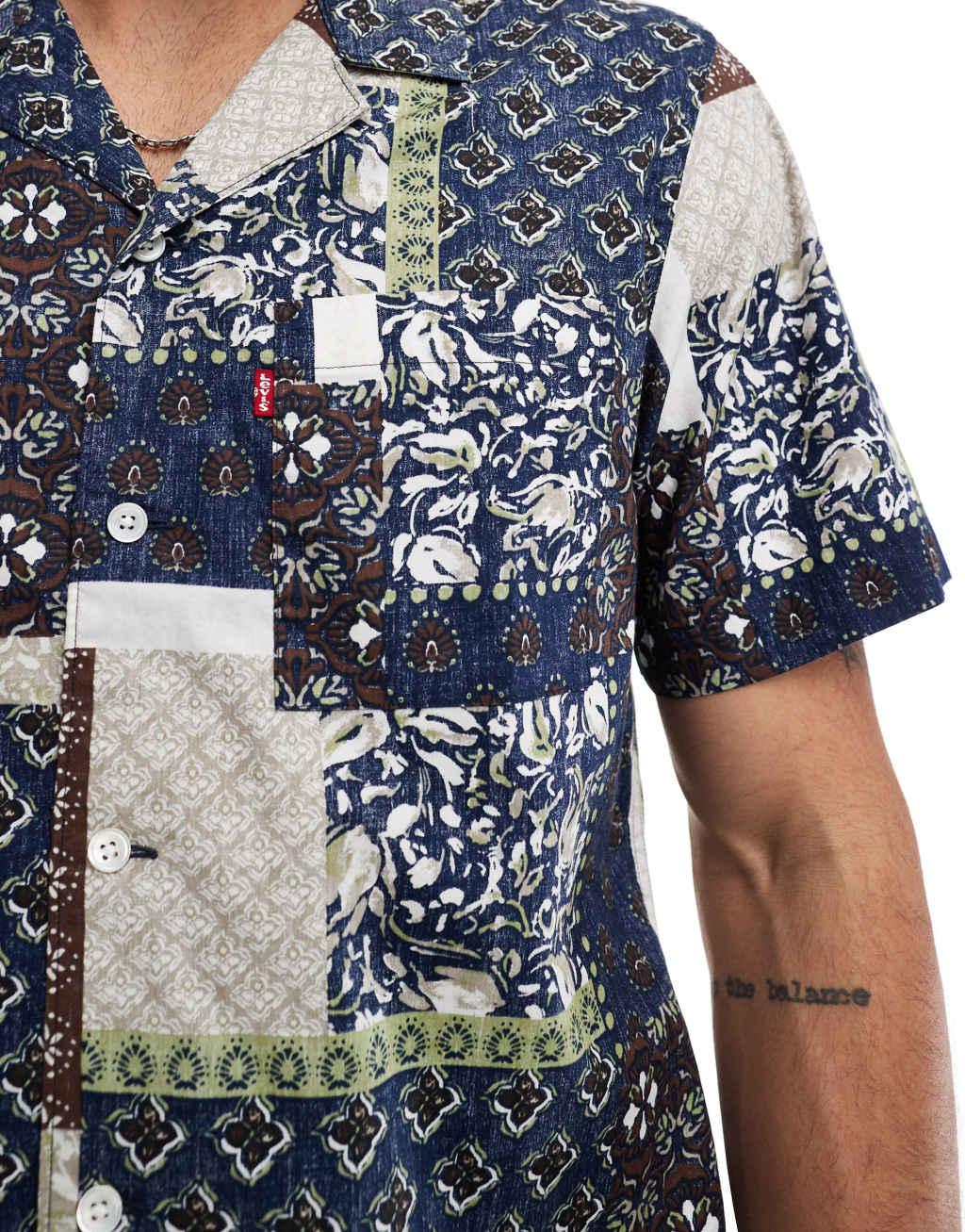 Levi's standard camp short sleeve revere collar patchwork print shirt in navy