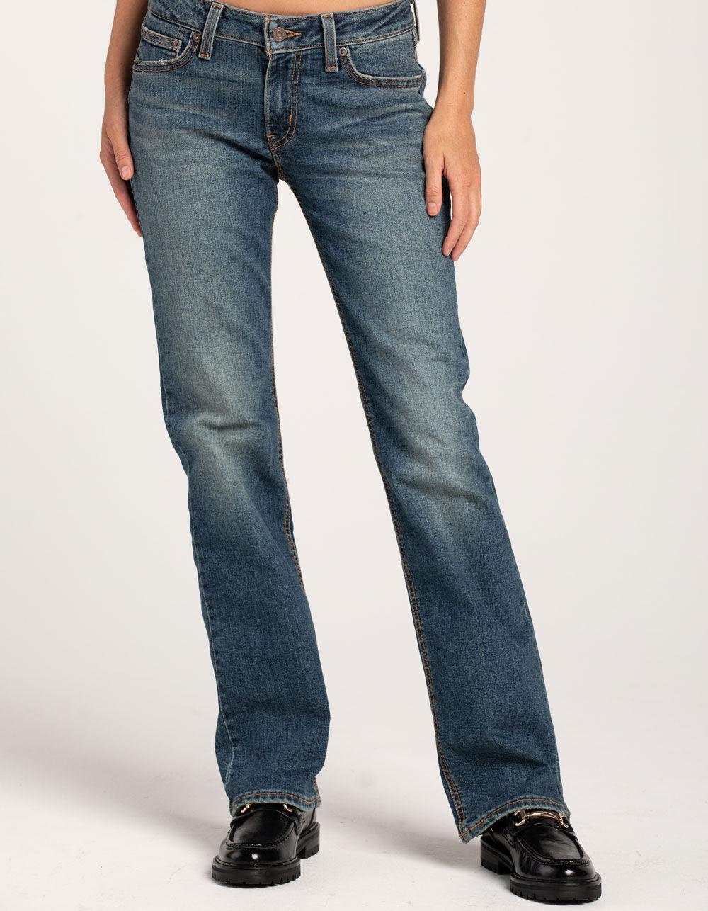 DARK VINTAGE. Levi's Superlow Bootcut Show On The Road Jeans. A low rise. Slim through the hip and thigh. Flared leg. Zip fly. Belt loop waist. Traditional five pocket styling. Medium wash. Approx. inseam: 31''. 85% Cotton, 14% Polyester, 1% Elastane. Machine wash. Imported.