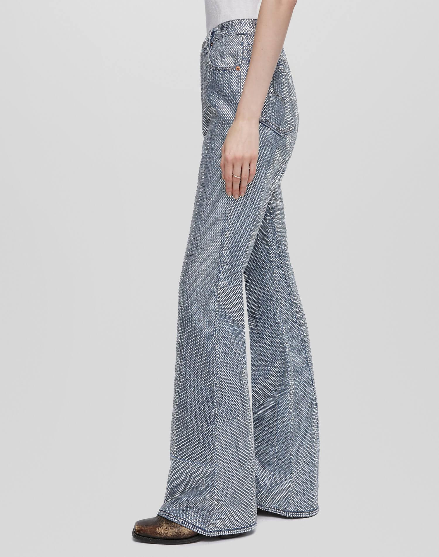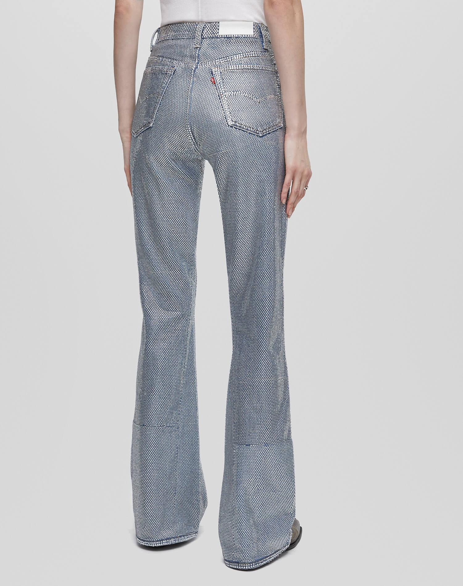 The Levi's Riding Jean is our take on the iconic western rodeo riding jeans. Features a snug top block and fitted through the thigh with a fit and flare attitude, all over crystal accents, full length inseam, classic button fly and finished hem.