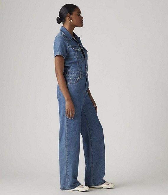 From Levi's®, this jumpsuit features: Collared neckline Short sleeves Button closure flap pockets Partial button front Belt loops Button-closure flap pockets Two front side pockets Two back pockets Standard fit Cotton Machine wash/tumble dry Imported.