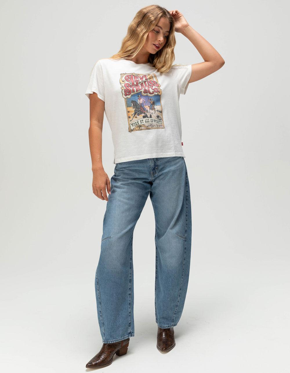 Levi's Worn Boyfriend Tee. Large graphic screened on front. Side seam flag label. Oversized fit. Crew neck. Short sleeve. 100% Cotton. Machine wash. Imported.