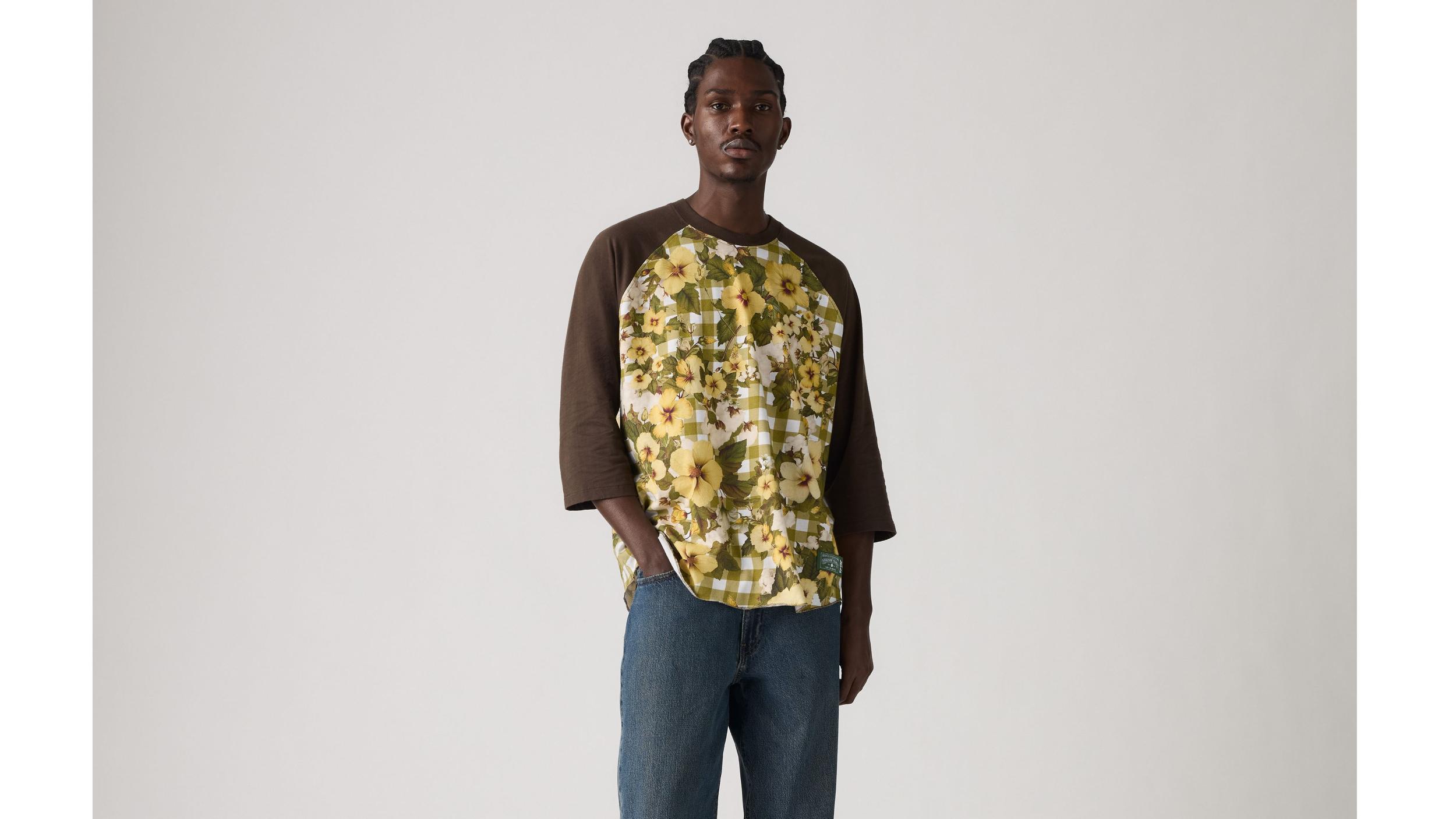 We teamed up with Denim Tears for a fourth season to celebrate the artistry, resilience, and community of the Young Seminole Hunters and the esteemed Big Chief Demond Melacon—blending heritage and streetwear into thoughtfully crafted designs.This limited-edition Baseball Tee combines floral gingham print with dark green sleeves inspired by Southern tablecloth patterns that embody family gatherings and communal celebration.A limited-edition baseball teeFeatures a floral gingham printInspired by Southern tablecloth patterns