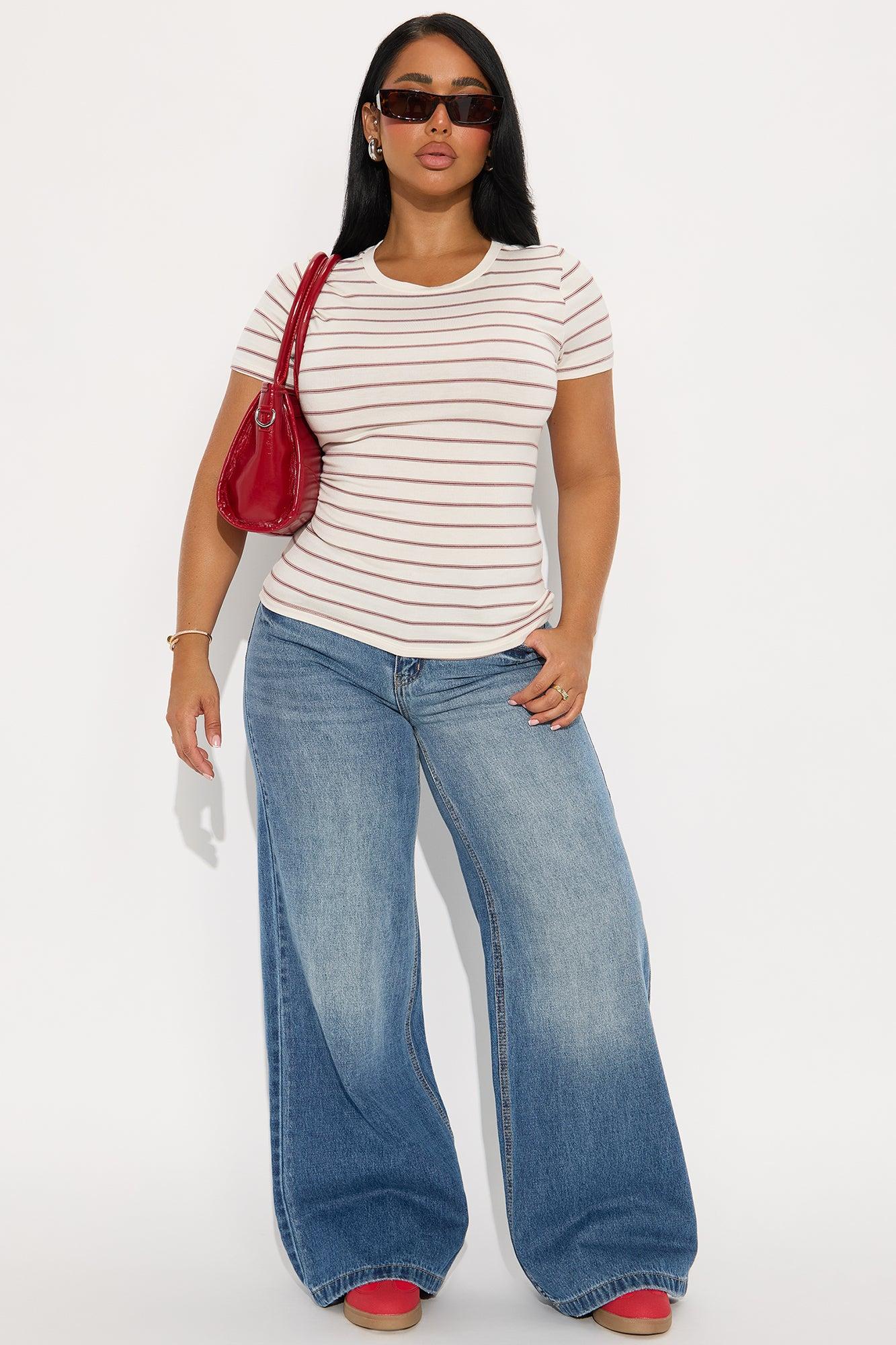 Available In White/combo. T-Shirt Crew Neck Short Sleeve Rayon Blend Stripes Stretch 95% Rayon 5% Spandex Imported