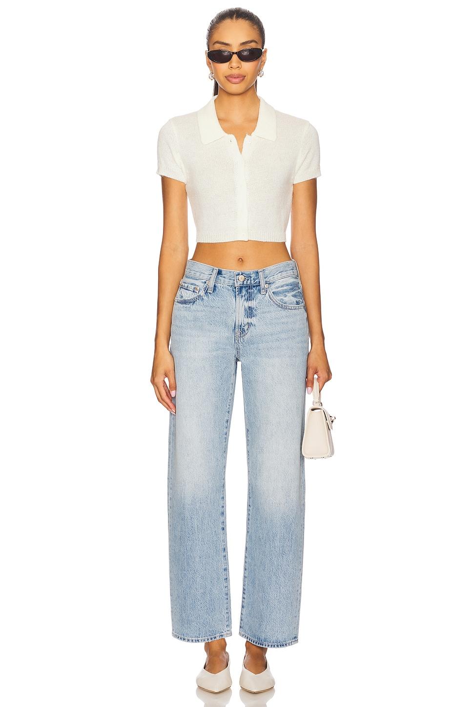 100% cotton. Machine wash. Zip fly with button closure. 5-pocket styling. Structured denim fabric with subtle whiskering and fading at front. 18" at the knee narrows to 16" at the leg opening. Made in China. Revolve Style No. PSTL-WJ390. Manufacturer Style No. P00016200-RL.