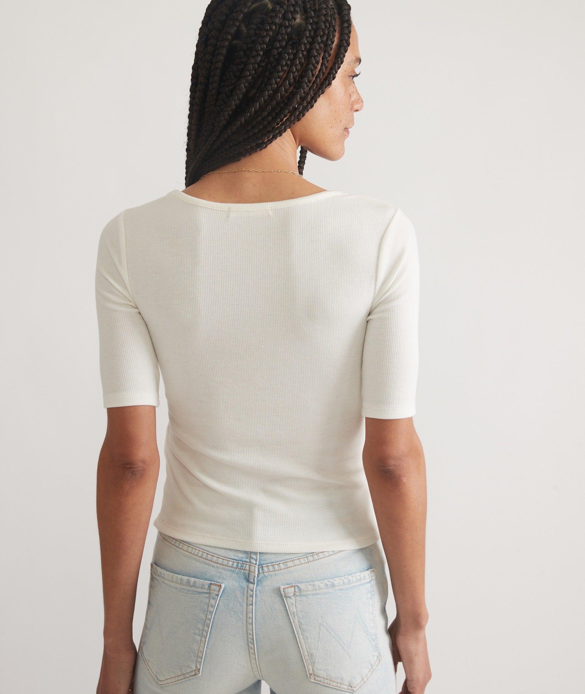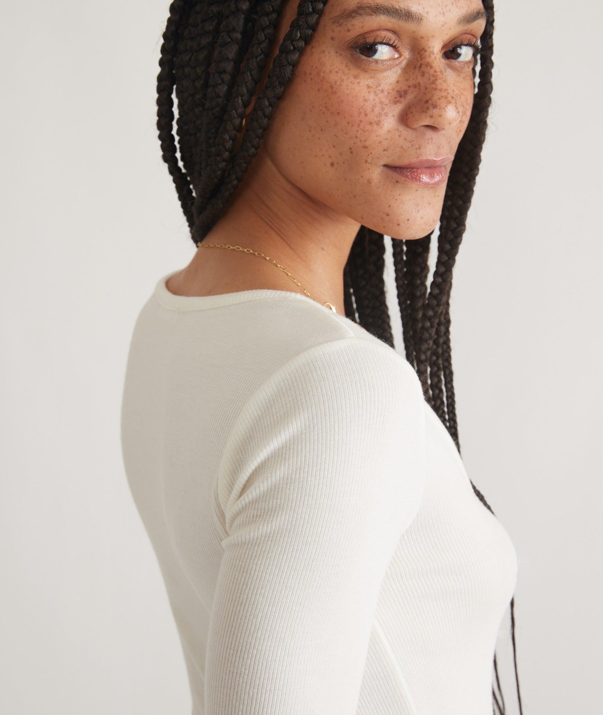 This gem of a top is made with lightweight, ribbed fabric plus a little bit of stretch. It's got a square neckline (heellooo, collarbones), and a slight puff in the shoulder for a perfectly feminine, vintage touch. Plus, we made it a touch longer for a little extra coverage (1 3/4", to be exact). Pair with jeans and booties, and boom — you've got a new go-to party outfit.