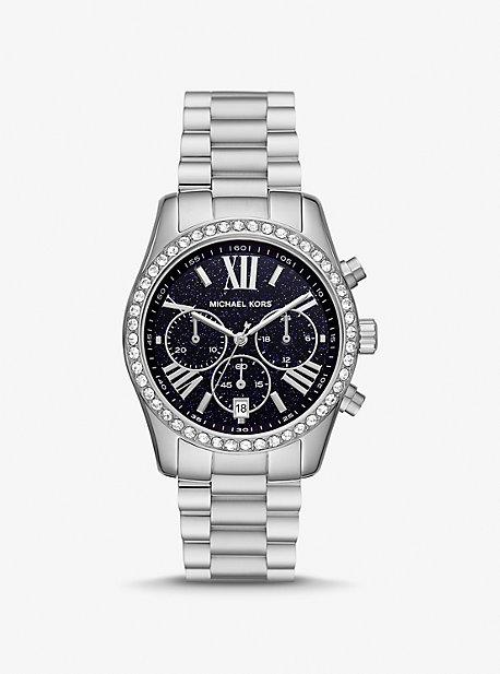From Michael Kors, the Womens Lexington Lux Chronograph Blue Dial Silver Stainless Steel Bracelet Watch features: Gender: WomenStainless steel bandBlue dialBracelet deployant closureChronograph movementBand width approx. 20mmCase size approx. 38mmCase thickness approx. 12.7mmInner Circumference: 175 /- 5mmWater Resistance: 10 ATM2-year limited warrantyImported.