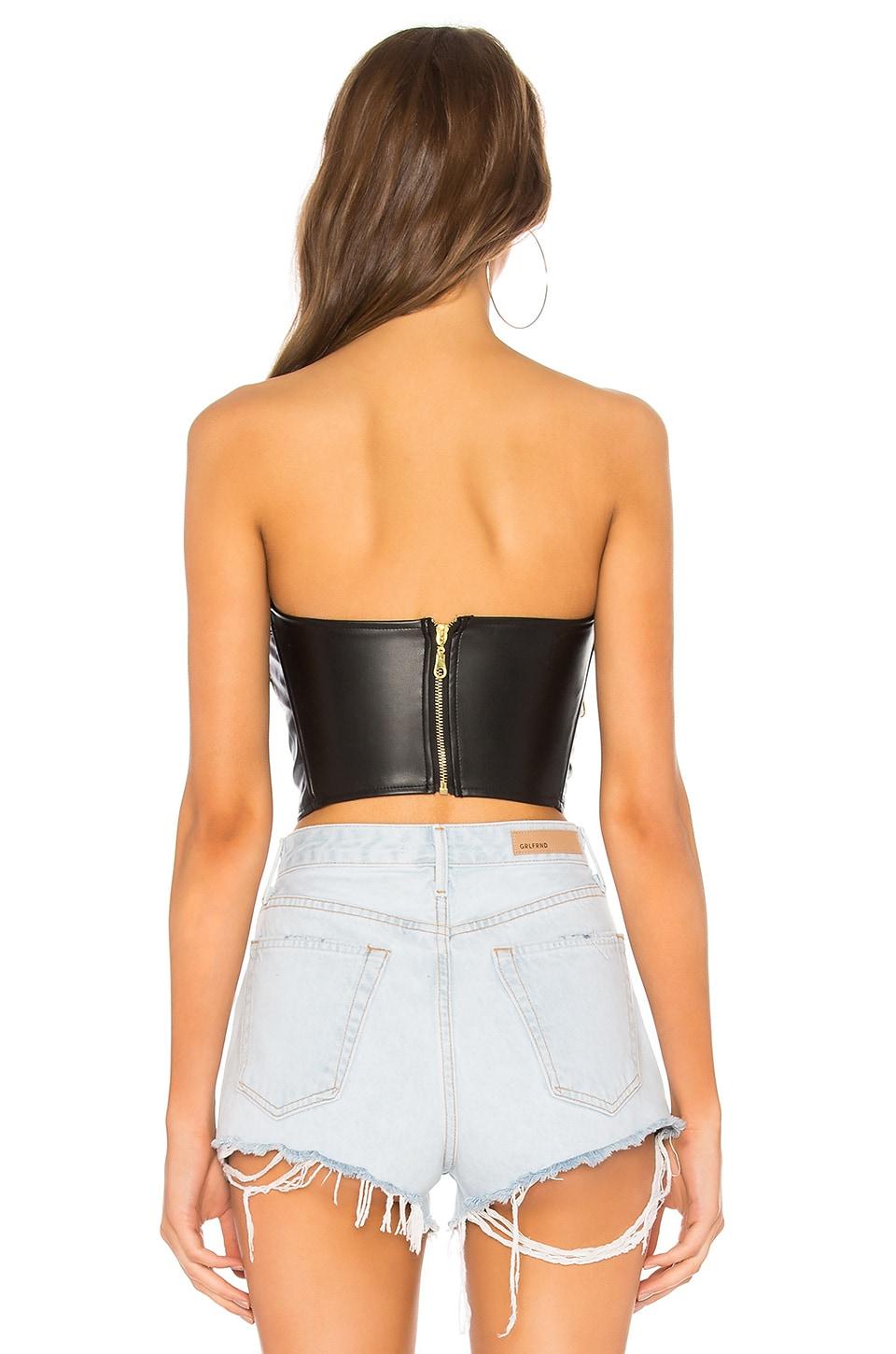 55% polyester, 45% polyurethane. Hand wash cold. Lightly padded cups. Gold tone zipper and button accents. Boned sides. Exposed back zipper closure. Made in China. Revolve Style No. BTWR-WS314. Manufacturer Style No. SDS2728 H23.