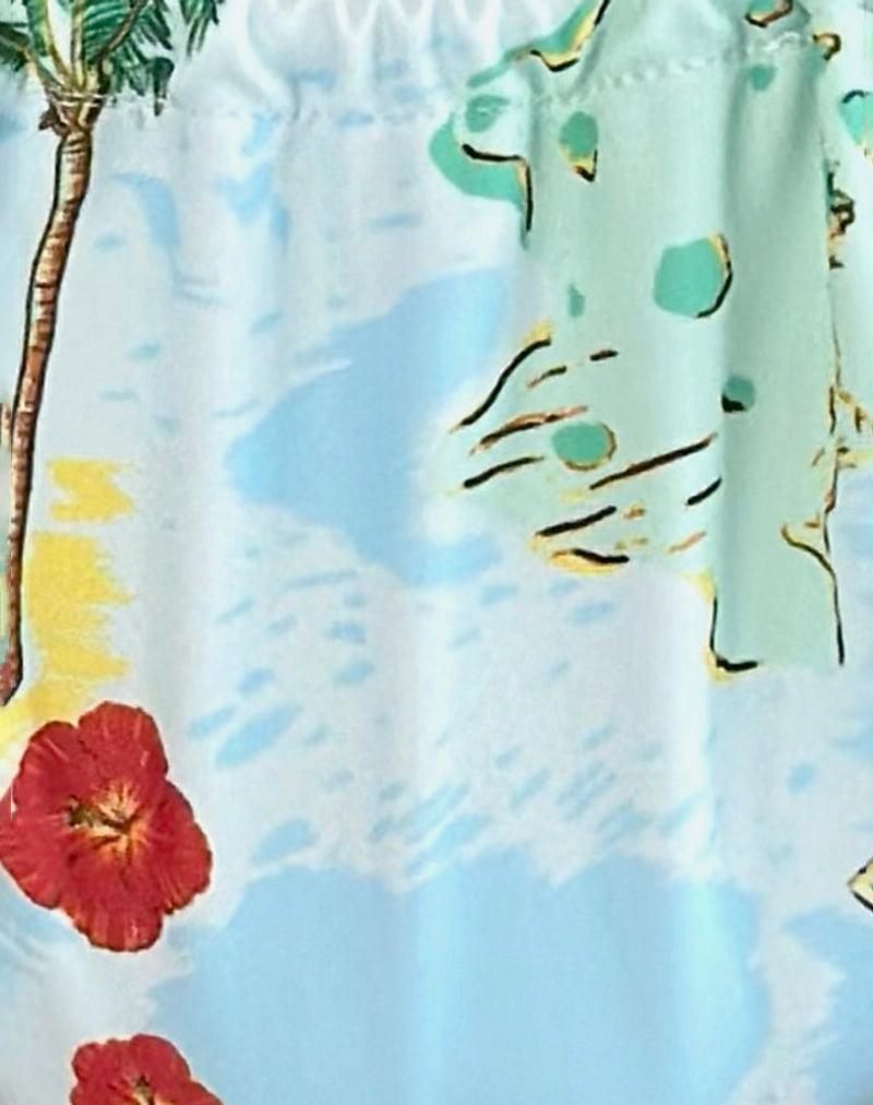 The Leyna, low-rise bikini bottoms with adjustable ties at each side and ruching on the front and back for adjustable coverage in a Bali blue print recycled stretch swim spandex. Finished with red beads placed on either side along the front ties. Get the matching Pami top. Please note that the print placement on this garment may vary slightly due to the fabric cutting process. MODEL WEARS SIZE:EXTRA SMALL - MODEL HEIGHT:5'6.5