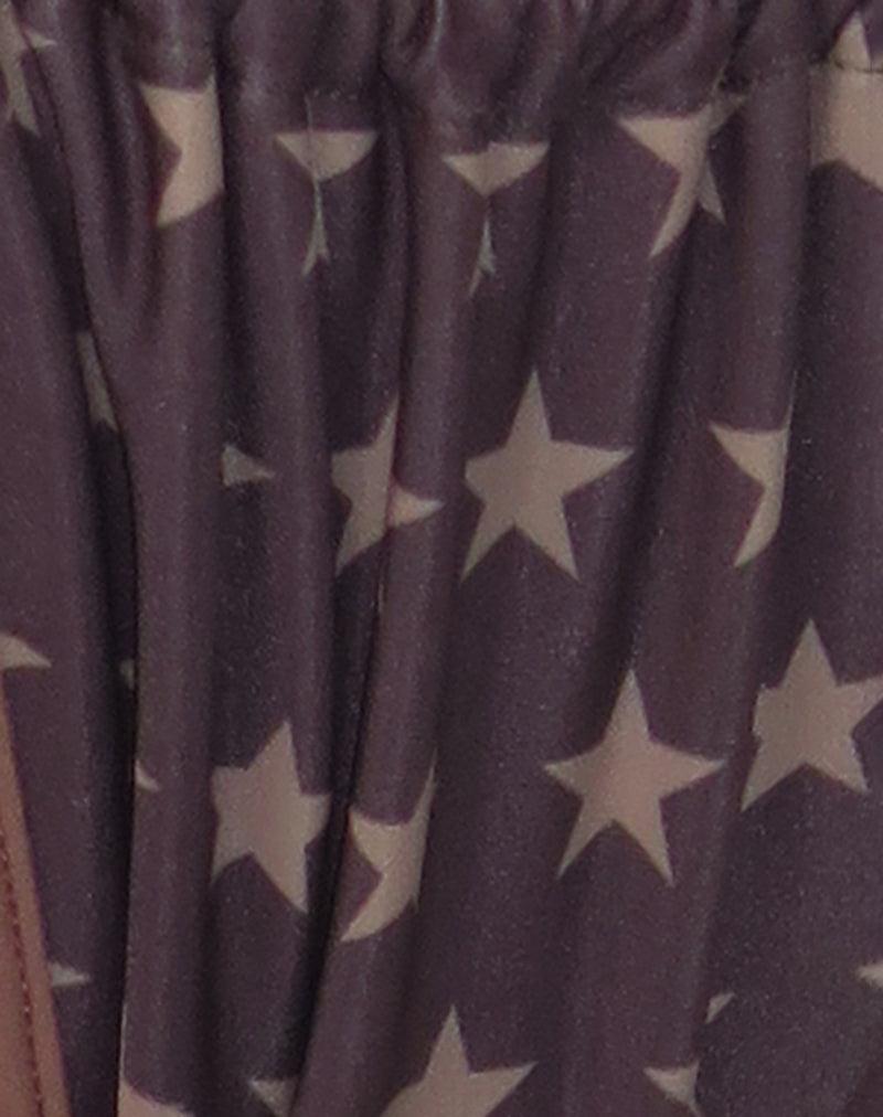 The Leyna bikini bottoms feature a low rise fit with adjustable ties at each side and ruching on the front and back for adjustable coverage. In a tonal brown star print with contrast binding. Cut from stretch swim spandex. Pair with the matching Pami top. MODEL WEARS SIZE: EXTRA SMALL - MODEL HEIGHT:5'7