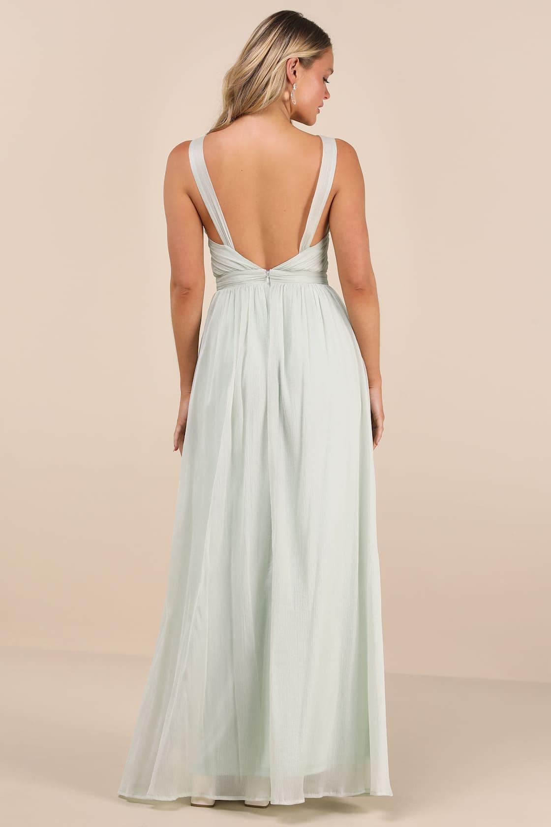 Gorgeous and flowy, this airy crinkle-woven chiffon gown will bring effortless elegance wherever you go. Slender straps support a knotted bodice with a keyhole cutout and an alluring open back, all atop a twirly, A-line maxi skirt. A convenient side slit lends a flirty finish. Hidden back zipper/clasp.