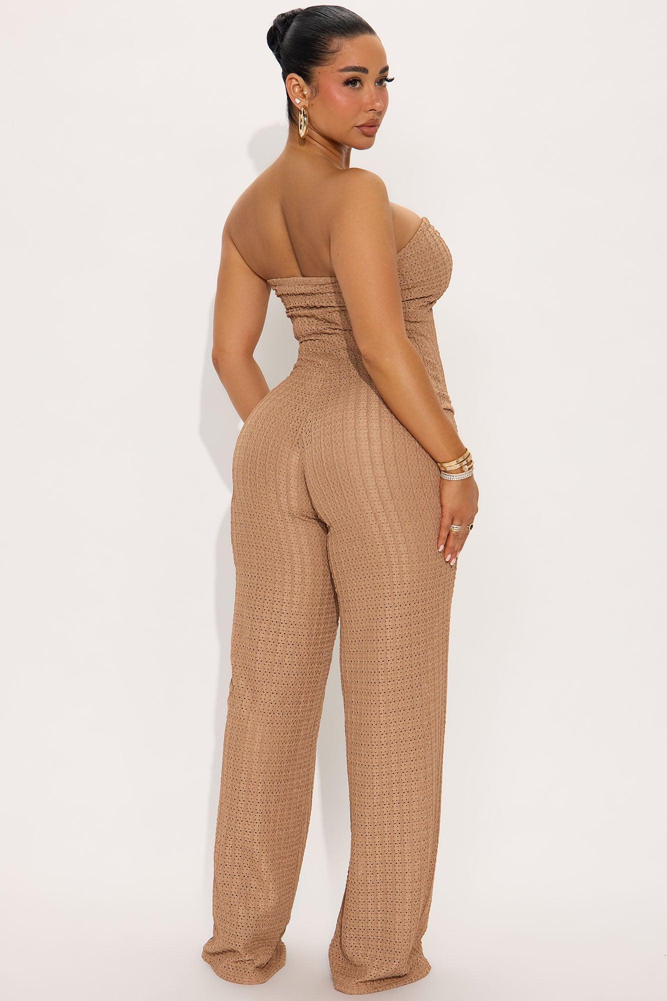 Lia Textured Wide Leg Jumpsuit - Camel