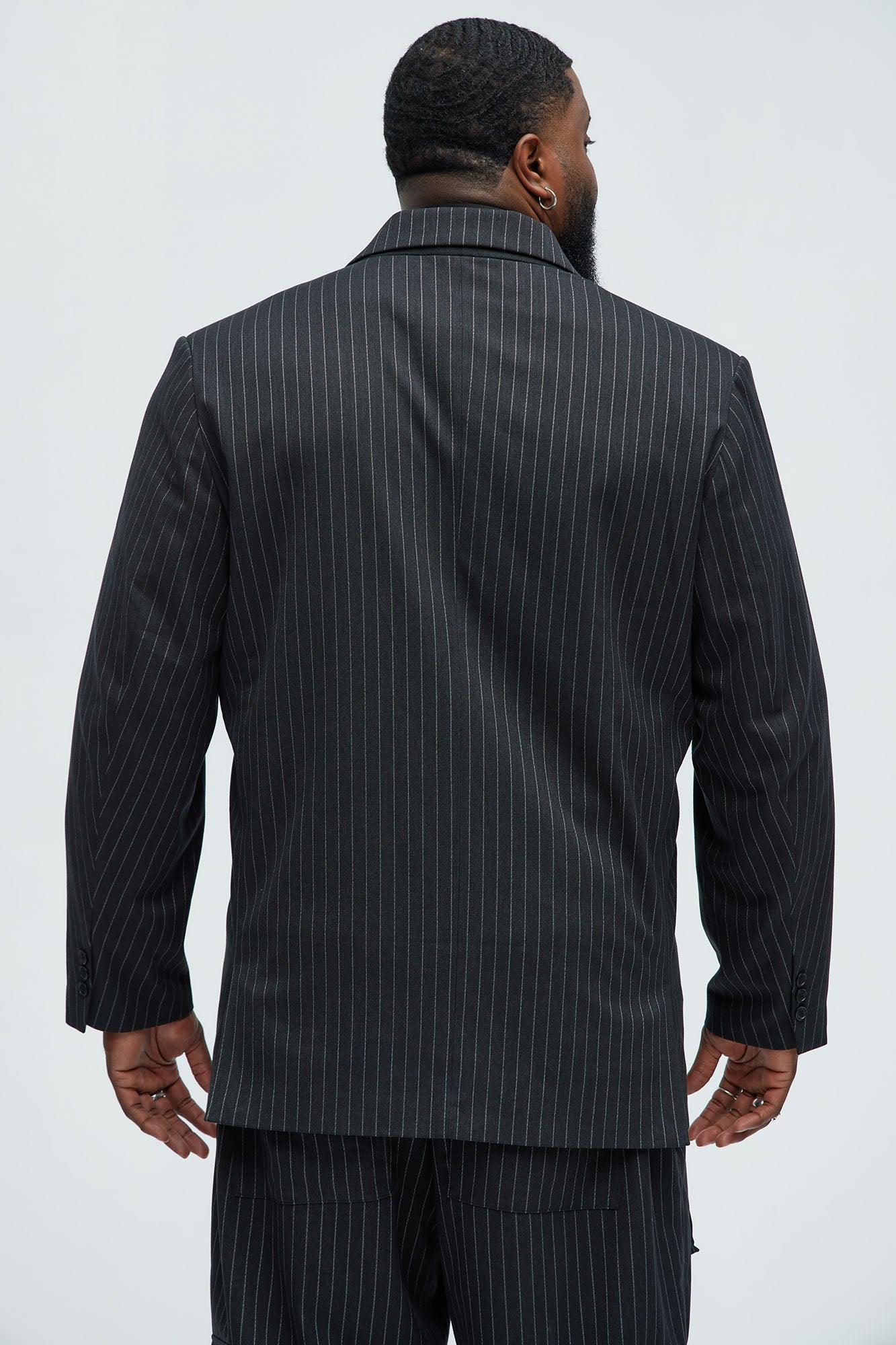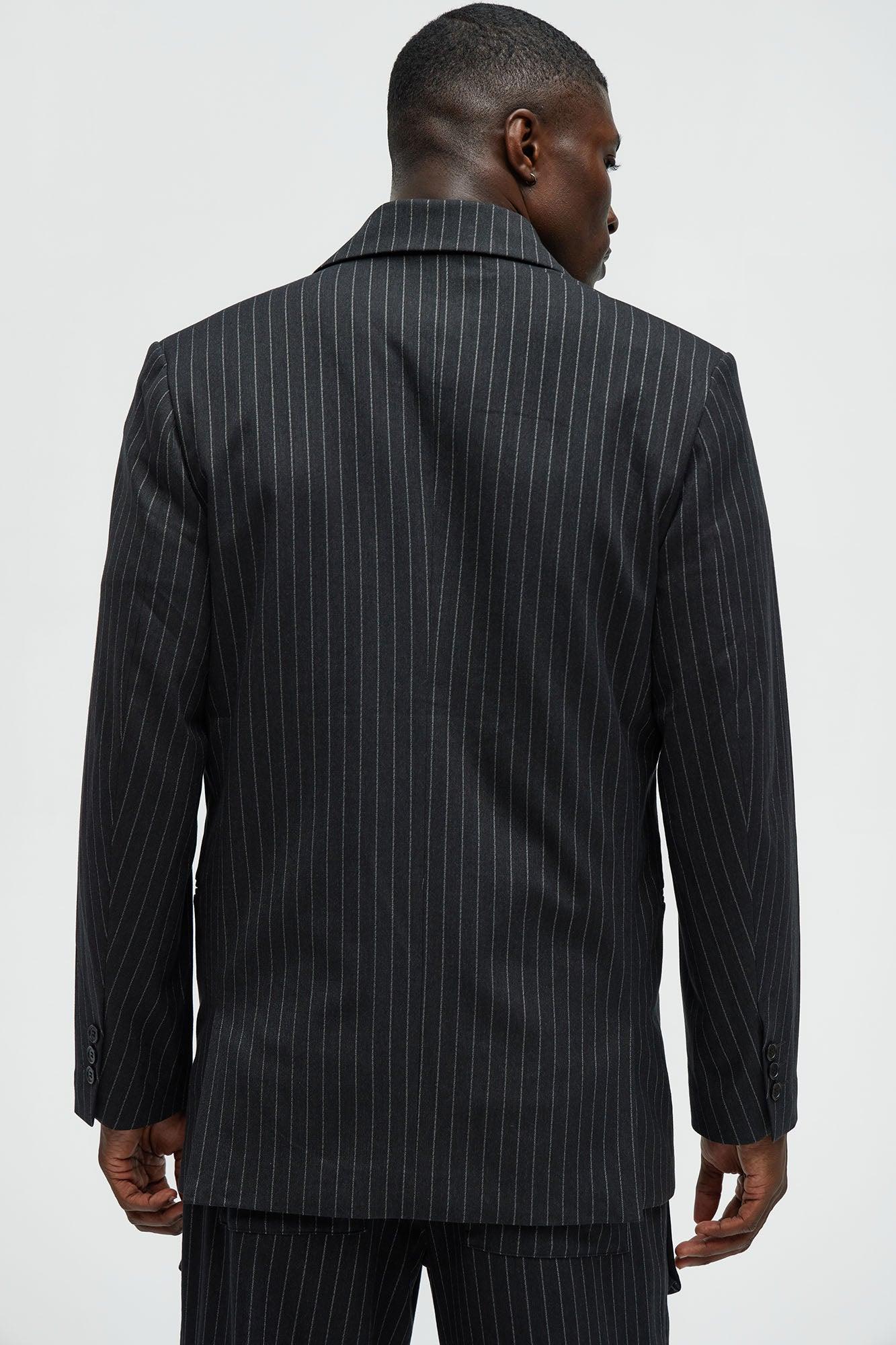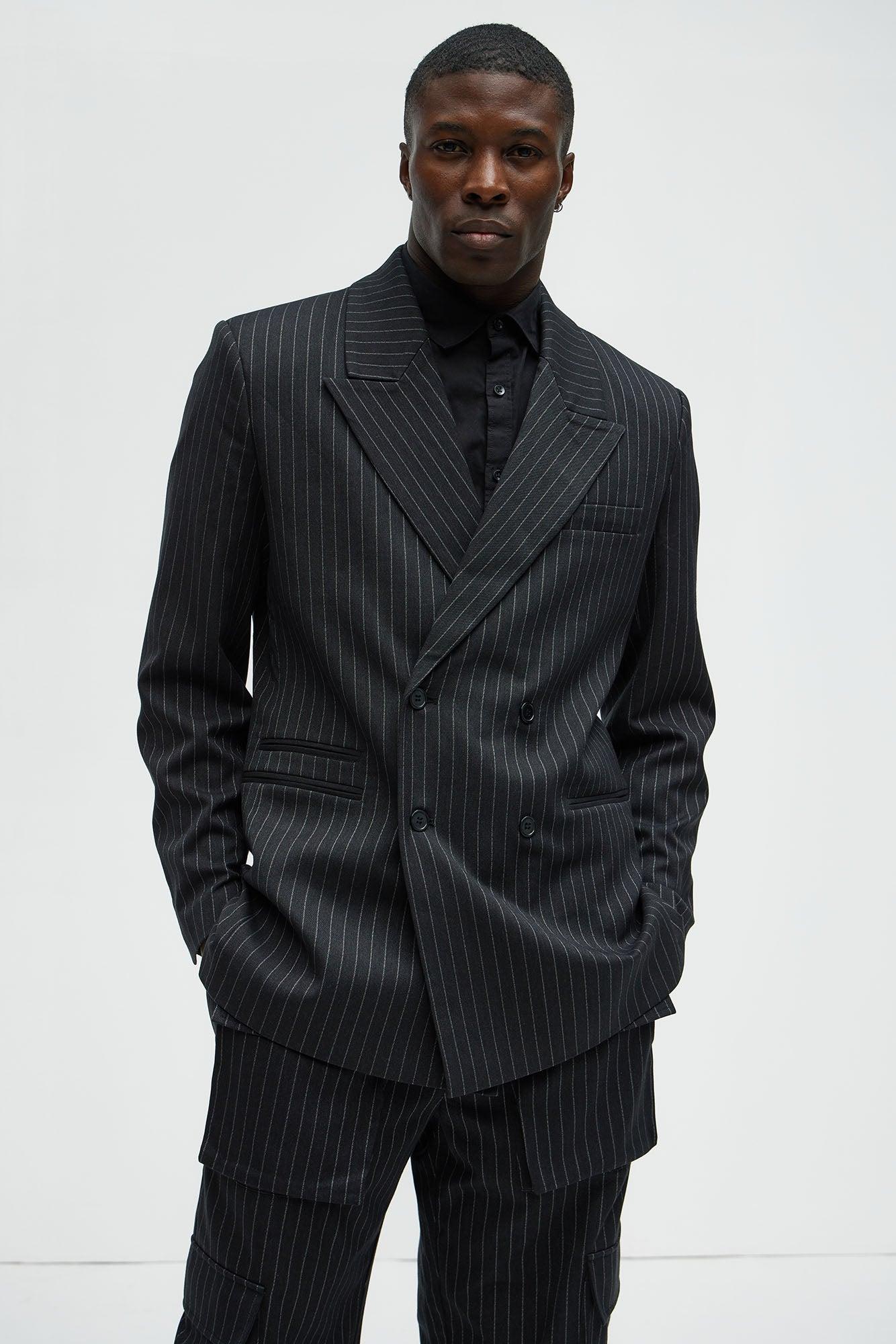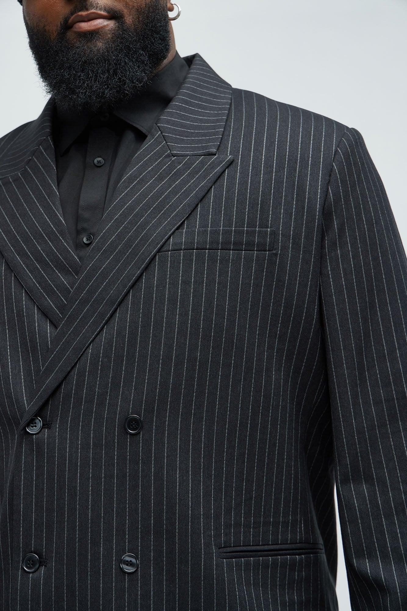 Liam Double Breasted Pinstripe Blazer - Black