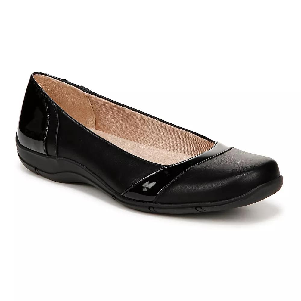 Meet your new go to flats. These LifeStride Daydream slip-ons with a slight wedge are an essential for every closet. Click this FOOTWEAR GUIDE to find the perfect fit and more! - https://www.kohls.com/feature/shoesizeguide.jsp. FEATURES: Faux leather with a square toe, easy slip-on fit, ballerina flat silhouette and lightweight and flexible outsole, Linings, toe box, and heel counter crafted with partially recycled materials, Easy fit with the Simply Comfort® collection., Traction sole provides you with extra stability. DETAILS: Synthetic upper, Fabric lining, Manmade outsole, Square toe, Slip-on, Foam footbed, Multi-directional outsole, 1.375-in. heel height, Spot clean. Size: 7.5 Wide. Color: Black Faux. Gender: female. Age Group: adult.