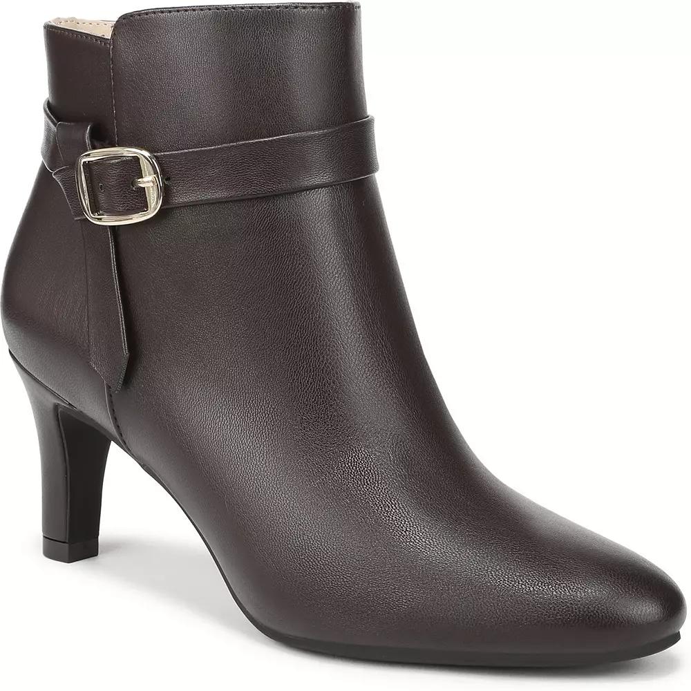 Embrace effortless elegance with these stunning booties from LifeStride. The chic design, featuring a sophisticated strap and buckle detail, perfectly complements your favorite outfits while the trusted Soft System comfort technology ensures you stay cushioned and supported all day long. Click this FOOTWEAR GUIDE to find the perfect fit and more! - https://www.kohls.com/feature/shoesizeguide.jsp. FEATURES: Trusted Soft System® comfort technology for unmatched cushion, support, and flexibility in every pair, Traction sole provides you with extra stability, Faux leather upper with an almond toe, Inside zip, and decorative strap and buckle detail. DETAILS: Synthetic upper, Fabric lining, Manmade outsole, Almond toe, Zipper closure, Foam footbed, Multi-directional outsole, 2.75-in. heel height, 3.071-in. shaft height, 10.236-in. shaft circumference, Spot clean, Imported. Size: 10 Wide. Color: Dark Chocolate. Gender: female. Age Group: adult. Material: OTHER MATERIAL.