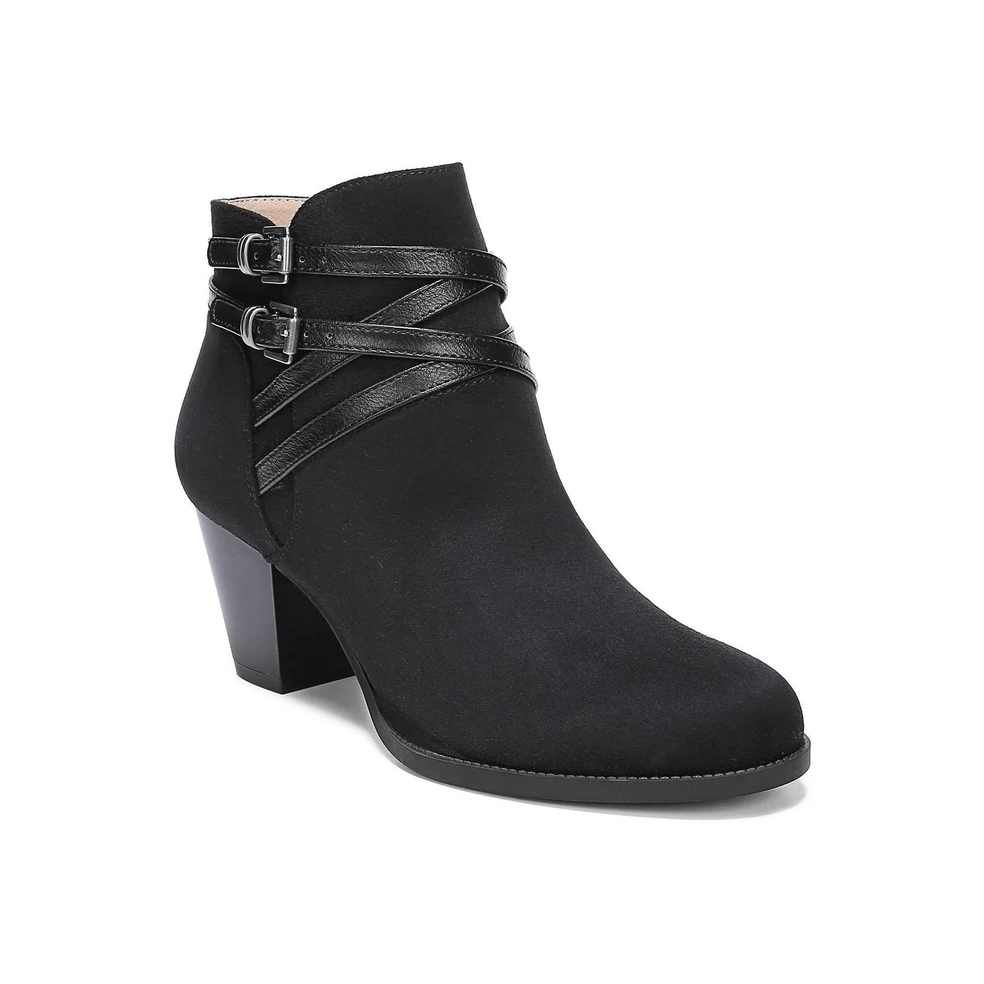 Spice up your style in the Womens Lifestride Jezebel Bootie. Fabric/Faux-leather upper in an ankle boot and bootie style with a round toe. Side zipper entry. Wrap around western buckle strap. Soft lining with a Velocity memory foam cushioned comfort footbed. Flexible outsole with durable traction tread 2.25-inch heel Womens Shoes Shoes SHOES