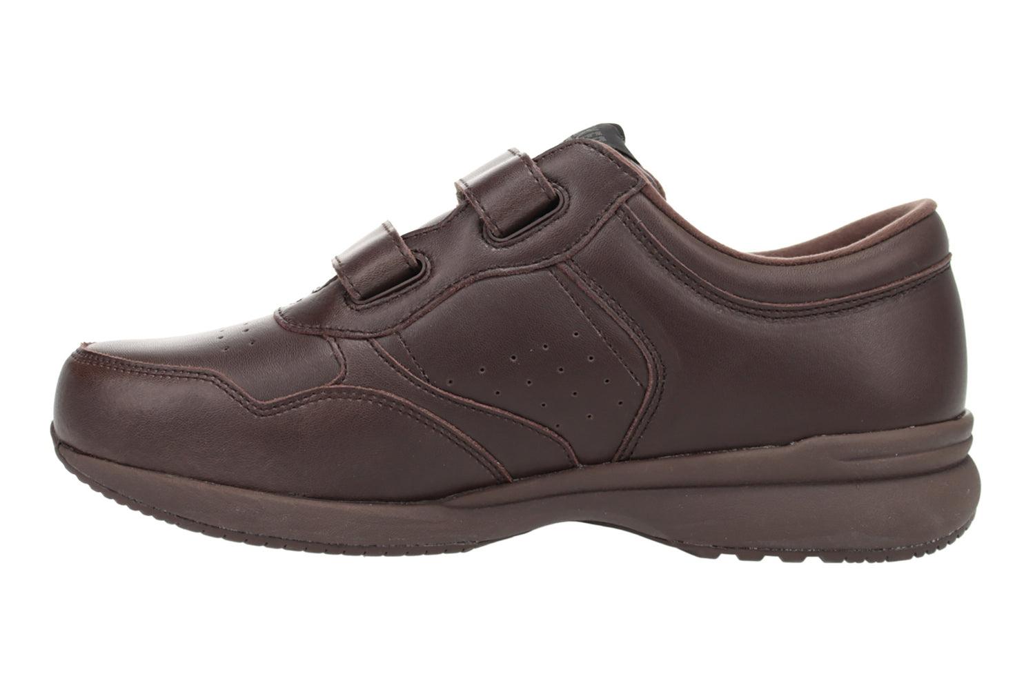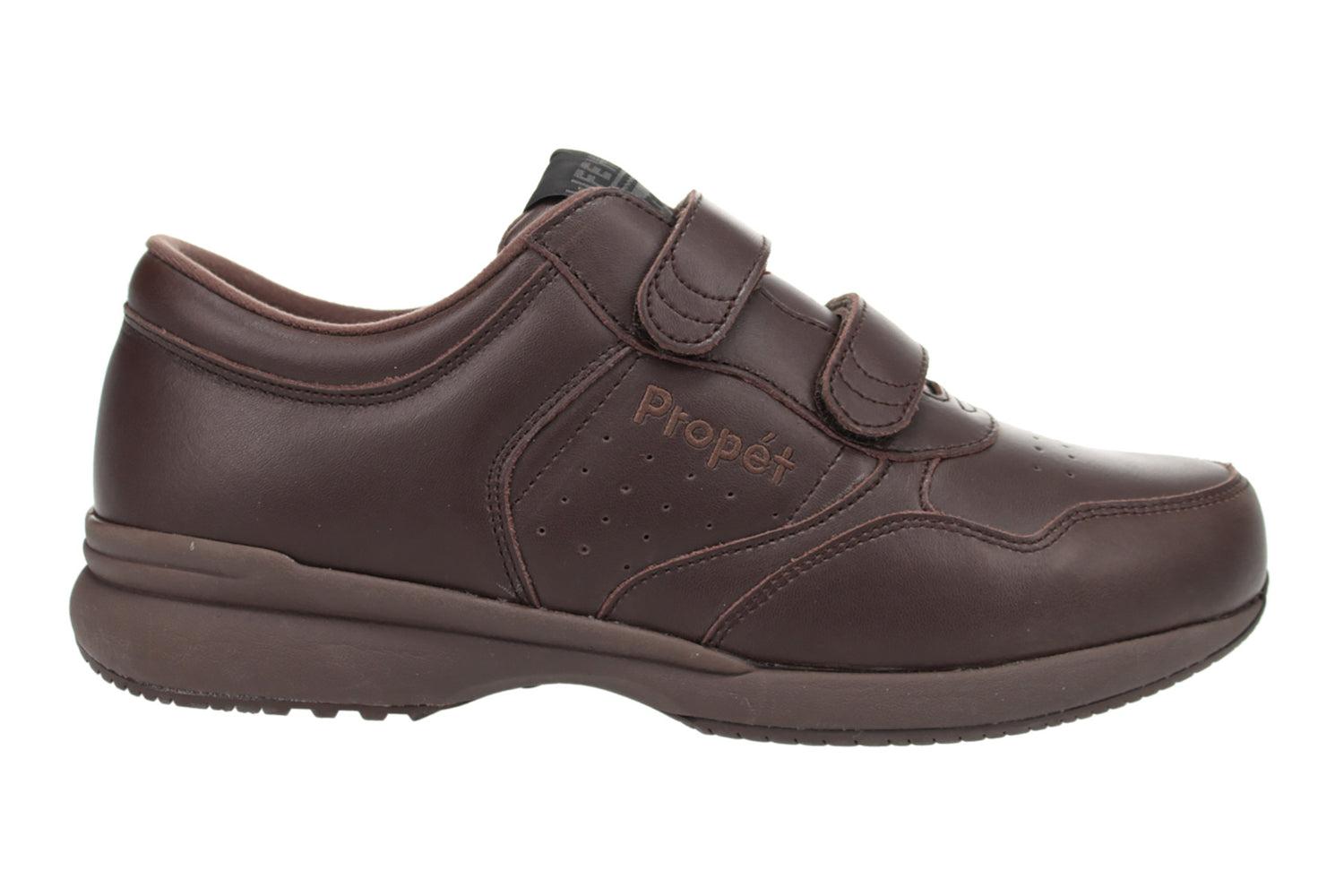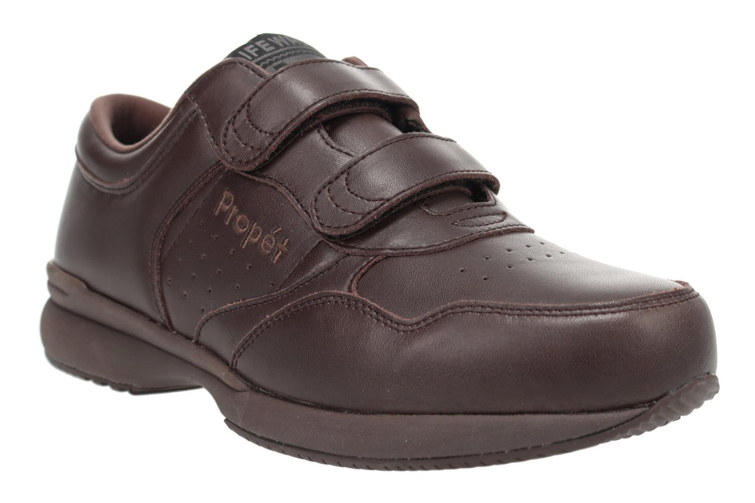 Propet Lifewalker Strap is a supportive men’s walking shoe. Features include leather uppers, adjustable straps, a removable footbed and a sturdy rubber outsole. A high-density Open Cell PU foam provides arch support and a breathable nylon lining keeps feet cool.