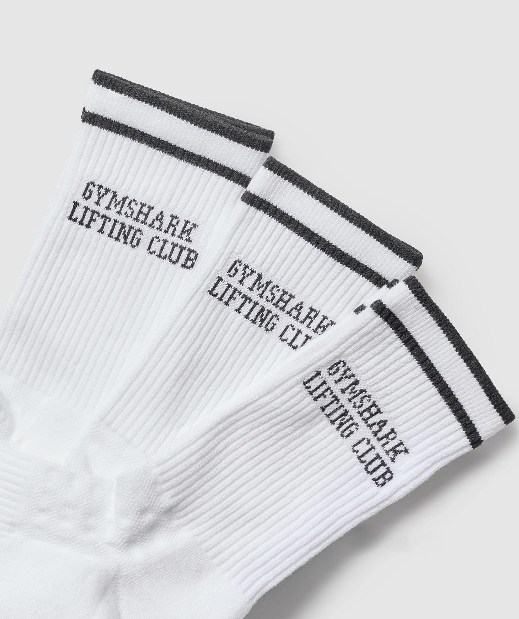 • Cushioning underfoot feels super comfy • Terry knit footbed and ribbed arch support for comfort• Stripes and ‘Gymshark Lifting Club’ graphic to the ankle• 3 pairs per pack