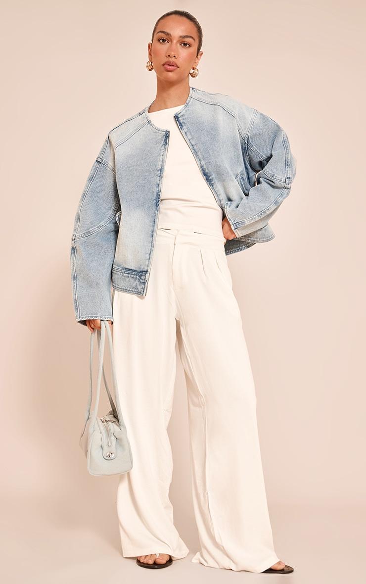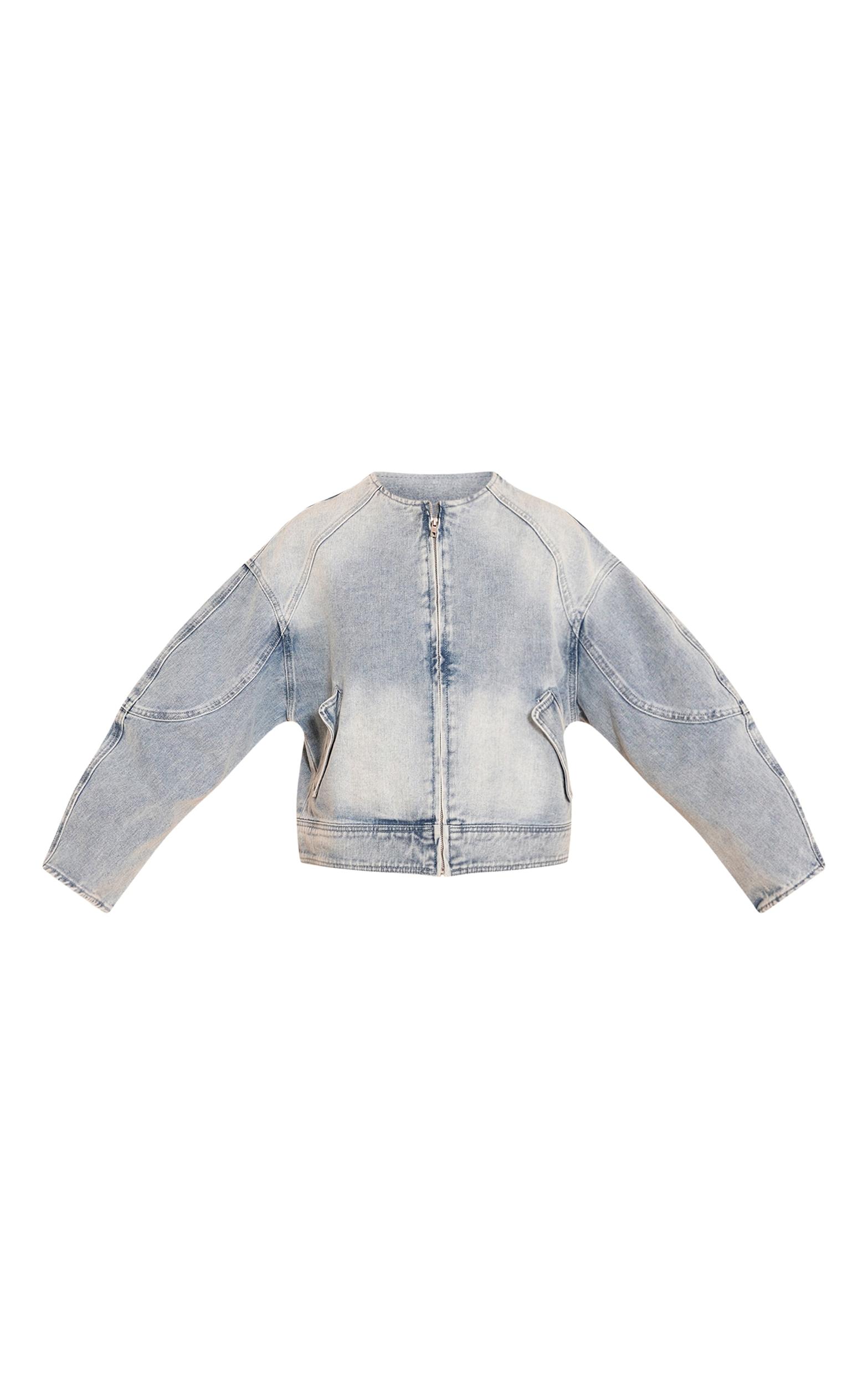 Layer up your look with this light blue round neck balloon sleeve denim jacket. Made from soft blue denim, this jacket has a zip fastening, collarless design and unique balloon sleeves. Wear it over an all-white outfit with sandals and gold earrings for a versatile look.Length approx 48.5cm/19inch (Based on sample size US 4)Model wears size UK 8/ EU 36/ AUS 8/ US 4Model Height - 5ft 7inchp]:!mb-4inch>Brand: PrettyLittleThingCategory: DenimProduct type: Denim JacketColor: Light BlueMaterial: Rigid DenimDesign: PlainSleeves: LongOccasion: Day