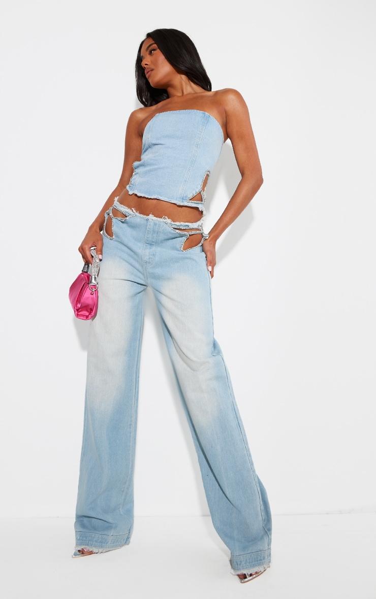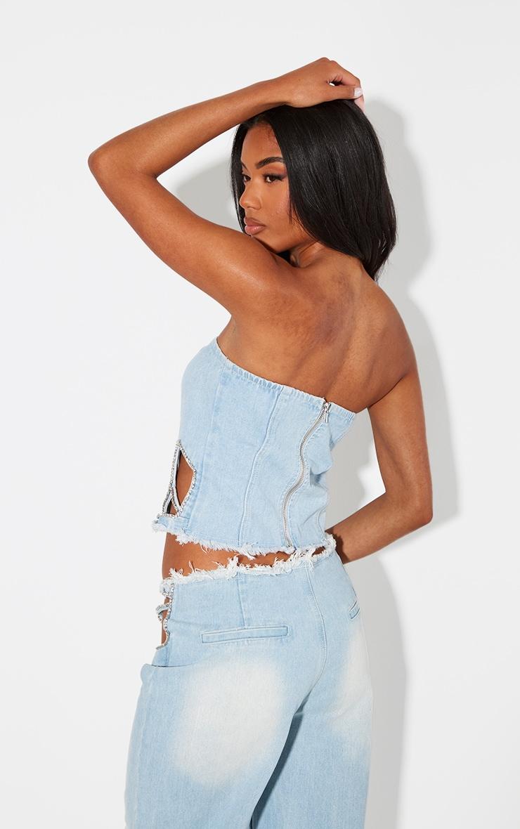 We are all about denim this season so get ready to take your outfit to a whole new level with this light blue frayed waist diamante detail corset denim top. Brough to you in a light blue denim material with a frayed waist design, diamante detailing and a flattering corset fit, how can you resist? Style this denim top with the matching bottoms, heels and statement accessories for a look that is sure to have all eyes on you. Length approx 30.5cm/12inch (Based on a sample size UK 8) Model wears size UK 8/ EU 36/ AUS 8/ US 4Model Height - 5ft 8inchp]:!mb-4inch>Category: DenimProduct type: Denim CorsetColor: Light Blue WashMaterial: Rigid DenimOccasion: Day