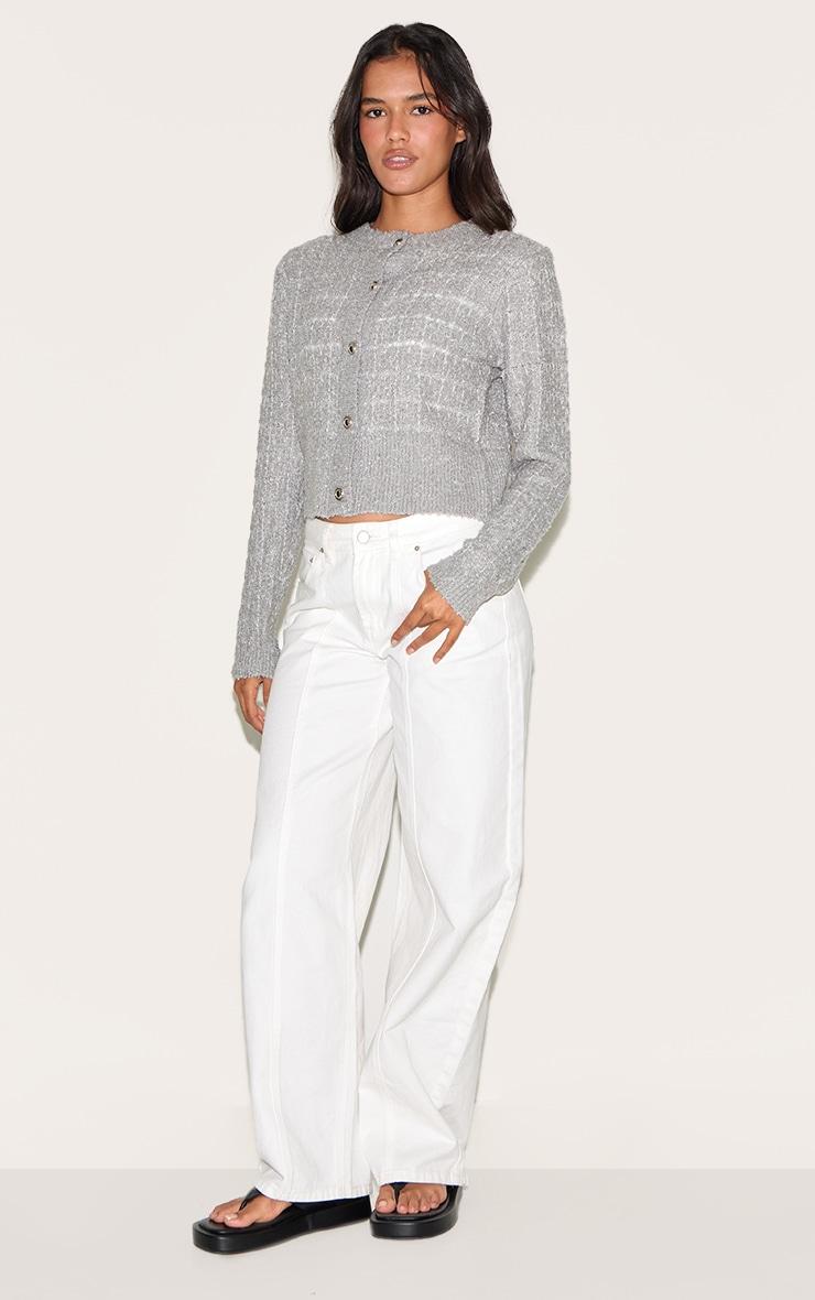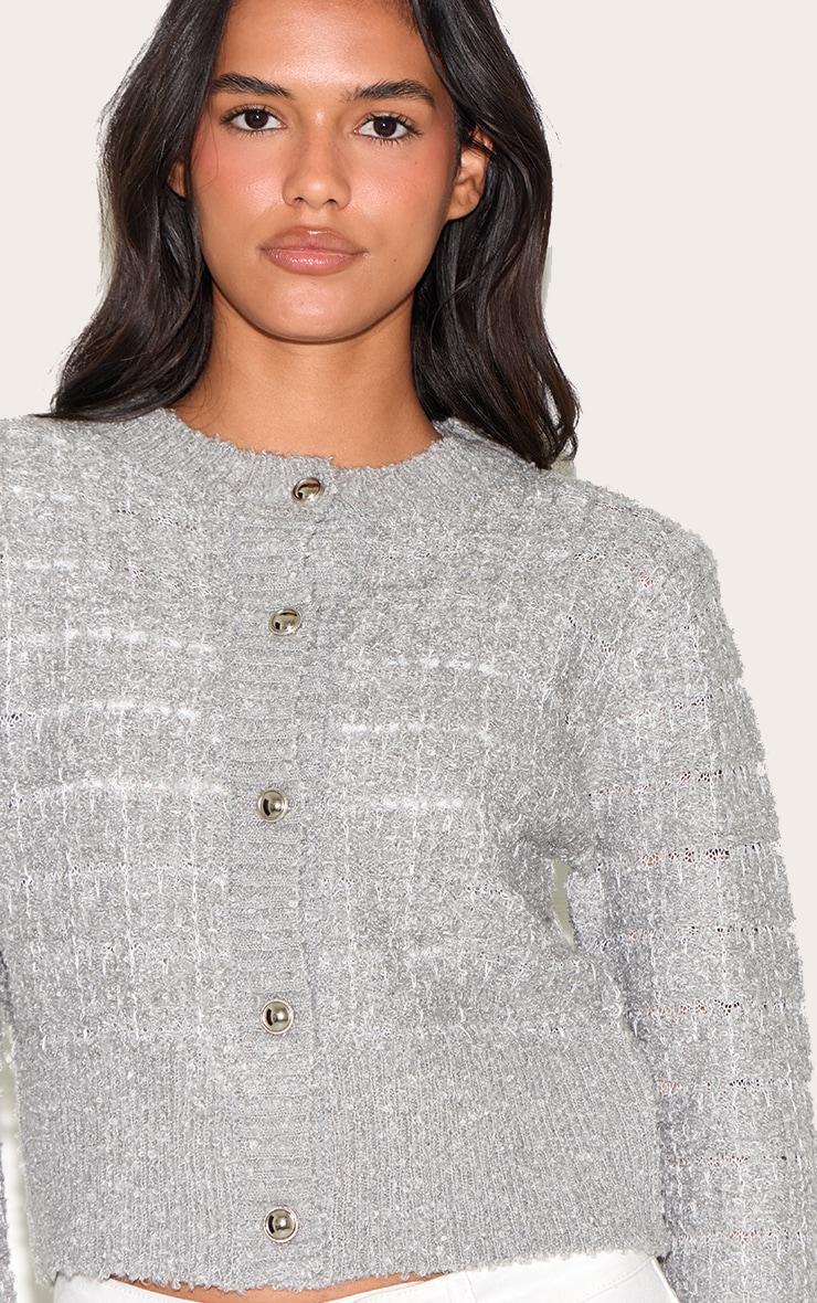 Add a touch of luxe flair to your wardrobe with this light grey boucle knit button through cardigan. Brought to you in a classic fit with gold button fastenings, this cardigan can be styled with your favorite white pants, minimalistic jewelry and chunky white sandals for an off-duty look we can't get enough of this season.Length approx 48.5cm/19inch (Based on sample size S)Model wears size SModel Height - 5ft 7inchp]:!mb-4inch>Brand: PrettyLittleThingCategory: KnitwearProduct type: CardigansColor: Light GreyMaterial: BoucleSleeves: LongOccasion: Day