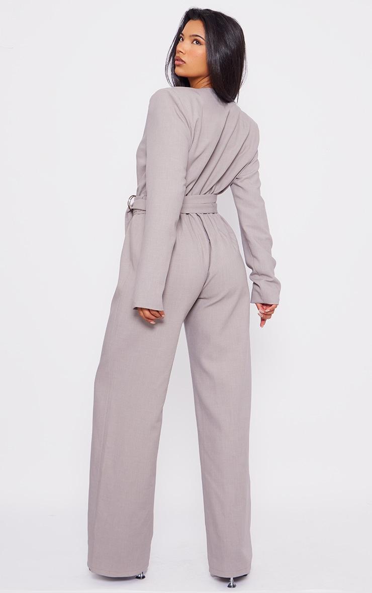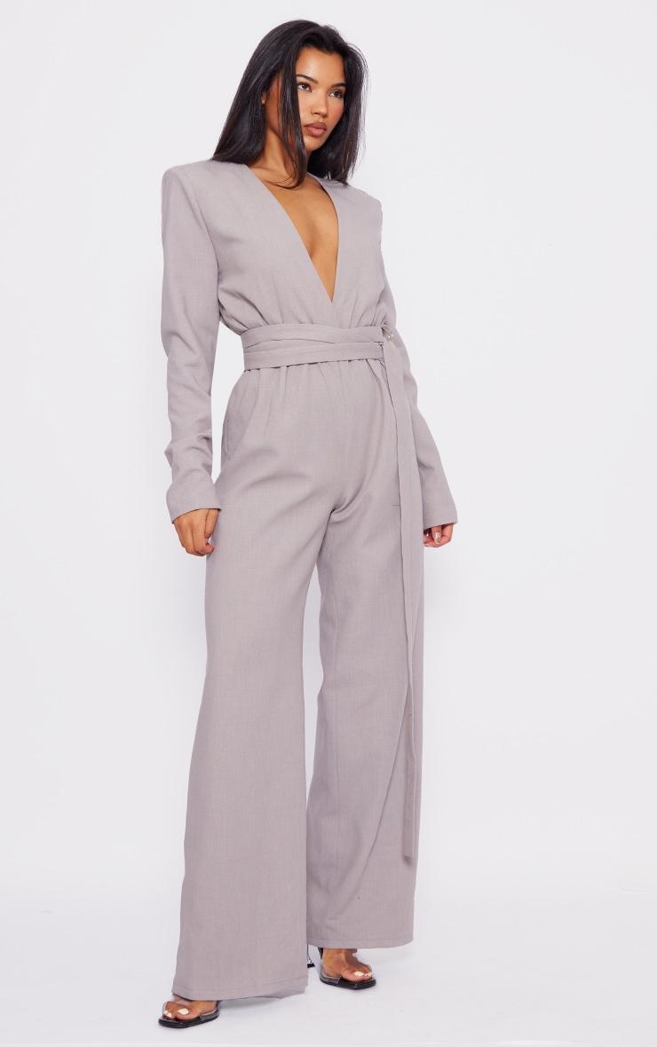 This light grey strap detail cross over wide leg jumpsuit is here to solve all of your 'what to wear' dilemmas. Brought to you in a light grey hue material with cross over strap detailing, long sleeves and a plunging neckline, how can you resist? In a flattering wide leg design, they won't be able to take their eyes off you in this light grey jumpsuit. Just add heels and some glam accessories to complete the look. Length approx 160cm/63inch (Based on a sample size UK 8) Model wears size UK 8/ EU 36/ AUS 8/ US 4Model Height - 5ft 6inchp]:!mb-4inch>Brand: PrettyLittleThingCategory: DressesProduct type: Wide Leg JumpsuitColor: Light GreyMaterial: Tailored WovenDesign: PlainSleeves: LongOccasion: Occasion