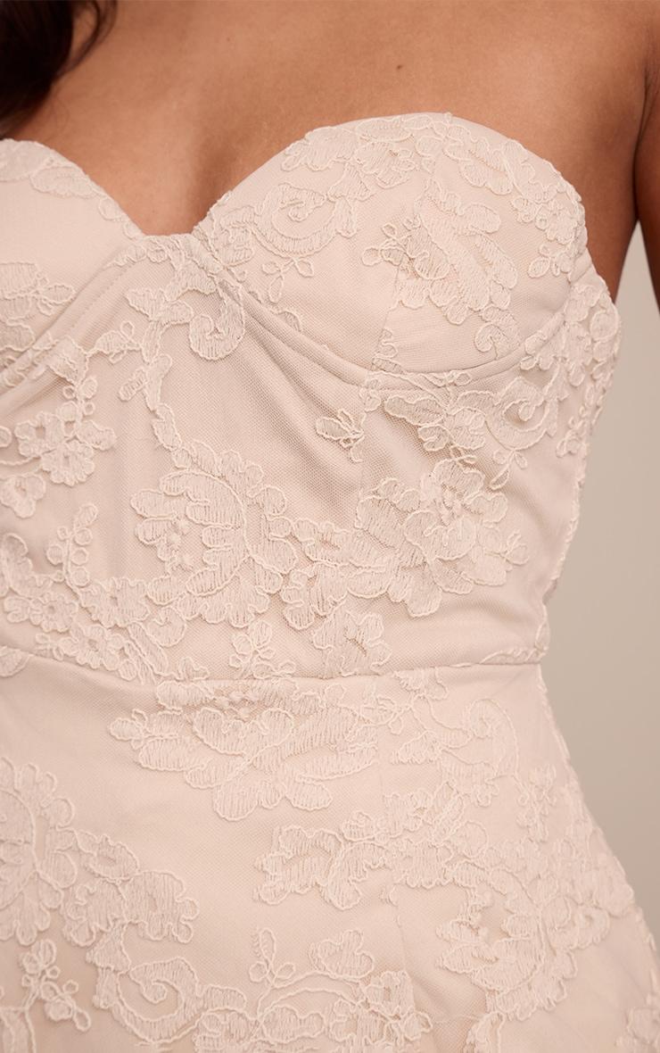 Channel chic confidence with the light nude floral crochet lace bandeau romper. This design presents a flattering bandeau neckline and intricate floral crochet lace detailing throughout. It's perfect for those unforgettable occasionwear moments in your diary. Style with elegant pointed heels and a chic clutch bag to finish your ensemble.Length approx 81.5cm/32inch (Based on sample size US 4)Model wears size UK 8/ EU 36/ AUS 8/ US 4Model Height - 5ft 8inchp]:!mb-4inch>Brand: PrettyLittleThingCategory: DressesProduct type: Tailored PlaysuitColor: Light NudeMaterial: Woven LaceDesign: EmbroideredNeckline: BandeauSleeves: BandeauOccasion: Occasion