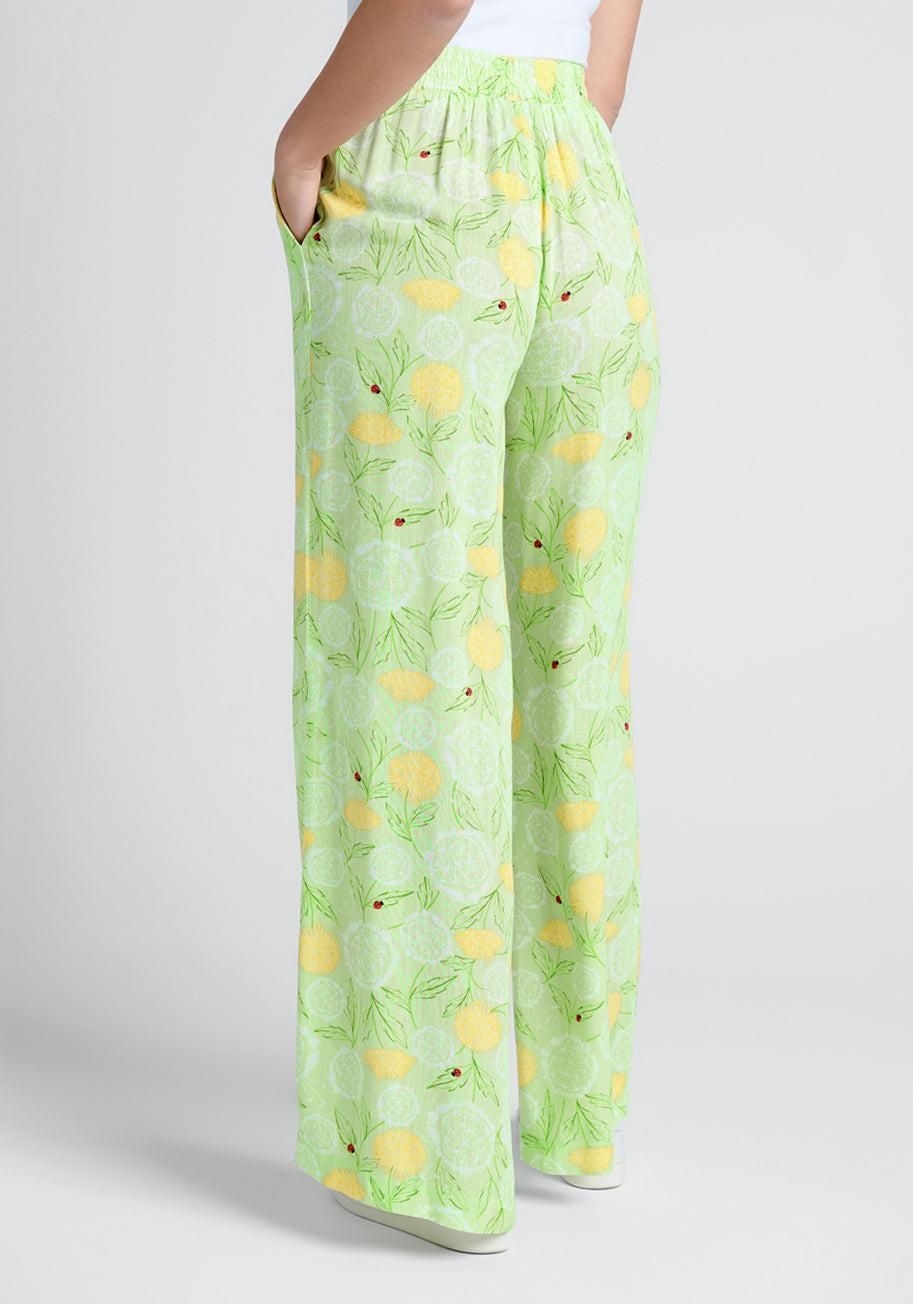 Keep your spring and summer wardrobe looking fresh and feeling easy with these adorably elevated, minty green pull-on pants from our ModCloth namesake label! Crafted from a lightweight crepey weave and covered throughout in a whimsical, hand-drawn print of willowy white and yellow dandelions that are being visited by the cutest colony of ladybugs, these V-front pants boast a wide, high-rise waistband with an elasticized panel at the back for ease of fit, handy side pockets, and a breezy full-length, wide-leg silhouette.