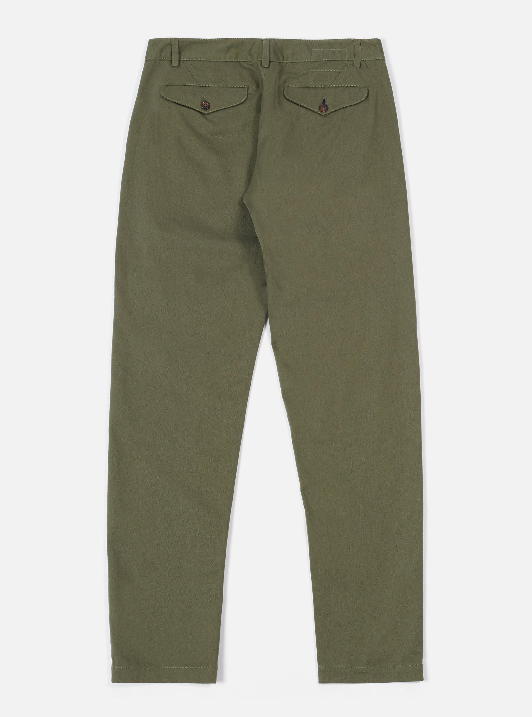 Slimish, straight-leg fit with the lowest rise of all UW. trousers. Exclusive UW Fabric; 3/1 Twill Weave. • Product Code: 00130. • Slimish, straight-leg fit. • Zip fly. • Low rise • Two front pockets. • Two rear buttoned flap pockets. • Fabric Content: 100% Cotton, 100% Cotton Trim. • Washcare: Wash at 30 degrees. Do not bleach. Do not tumble dry. Warm iron. Do not dry clean. Wash like colours together. Please be aware if purchasing as a suit, that jackets and trousers are not necessarily cut from a single piece of cloth and therefore minor variations could be possible. Exchanges can be made for any two or three pieces not pairing perfectly. [sizing] Please be aware that the measurements below are technical measurements that are based on the garment laid flat and are useful as a general guide only. You can find a trouser fitting guide on our journal here. For advice on sizing, we have a small guide available here - or alternatively, contact us if you'd like any help. Measured in Centimetres. 26" 28" 29" 30" 31" 32" 33" 34" 36" 38" Outside Leg - Inc. Waistband. 99.5 102.5 104 105.5 107 108.5 110.5 112.5 115.5 115.5 Waist. 35.5 38 39.25 40.5 41.75 43 44.25 45.5 48 50.5 Thigh - 2.5cm Below Crotch. 27.5 29 29.75 30.5 31.25 32 32.75 33.5 35 36.5 Hem Opening Width. 16 17 17.5 18 18.5 19 19.5 20 21 22 Front Rise Inc. Waistband. 25.5 26.5 27 27.5 28 28.5 29 29.5 30.5 31.5 Back Rise Inc. Waistband. 34 35 35.5 36 36.5 37 37.5 38 39 40